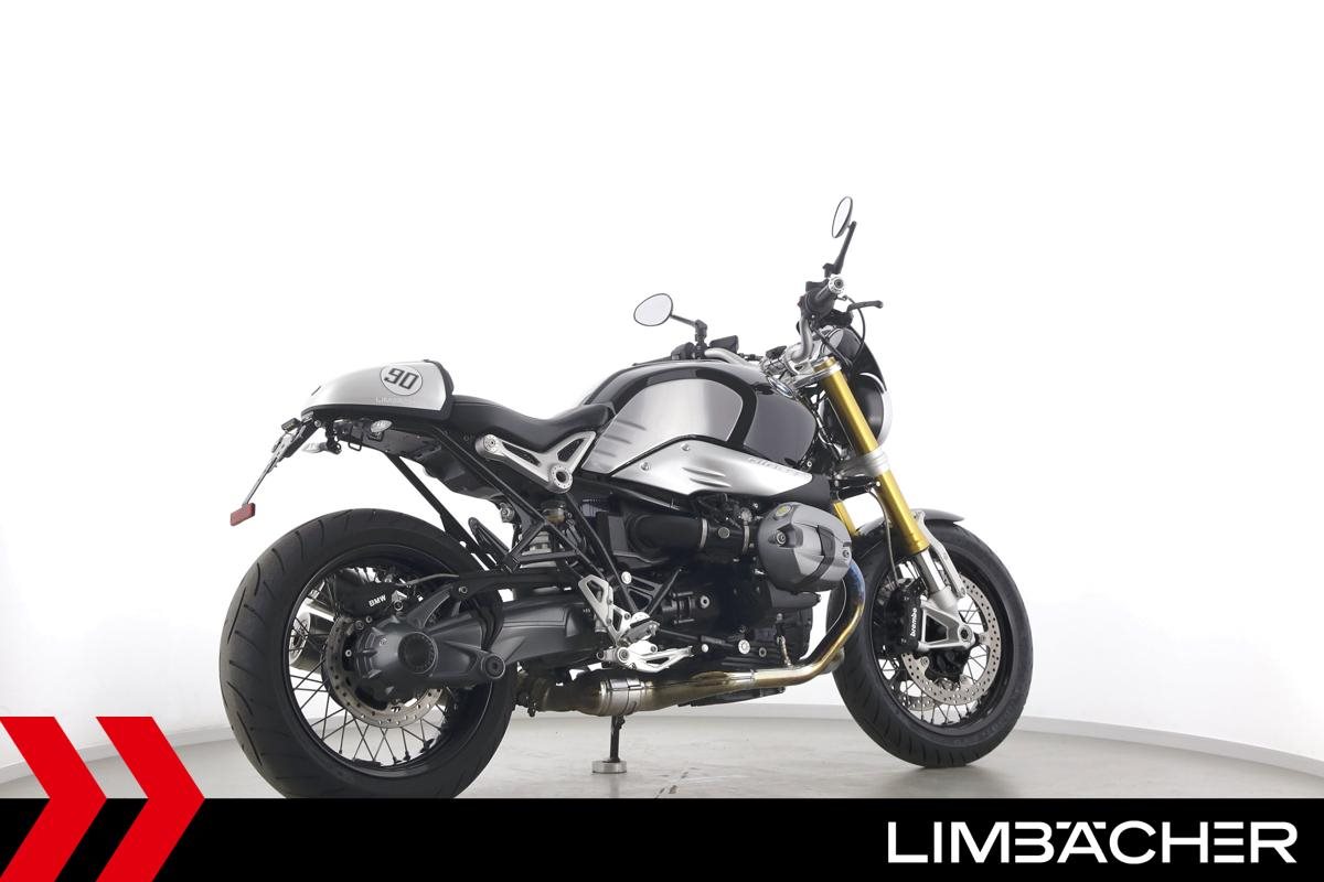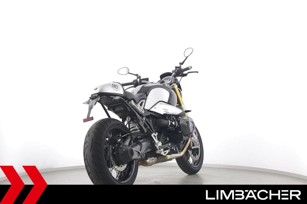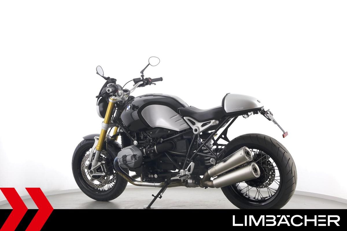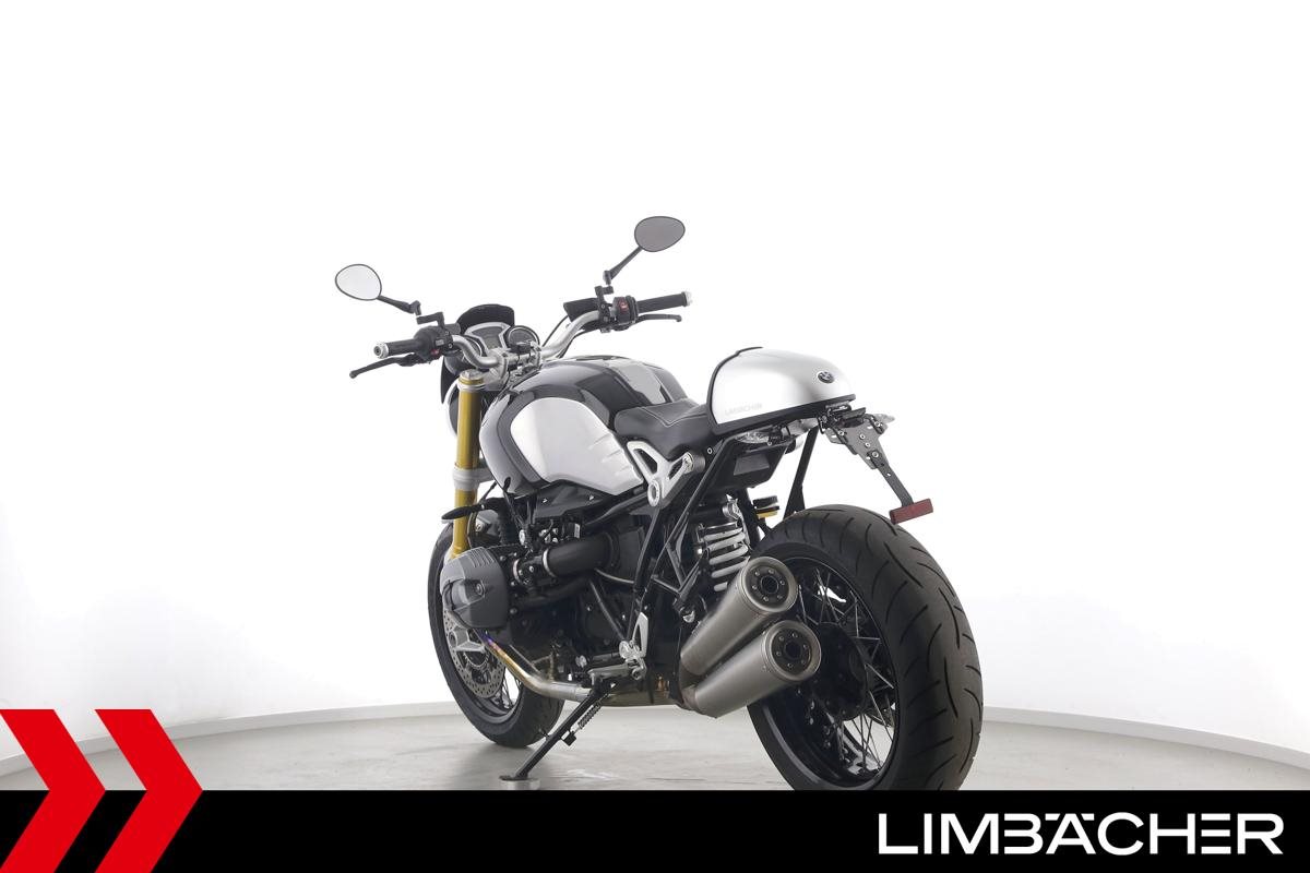 Eine scheckheftgepflegte BMW R nineT aus zweiter Hand in sehr gepflegtem Zustand u.a. mit Akrapovic-Doppelauspuff sowie einem kurzem Kennzeichenhalter.