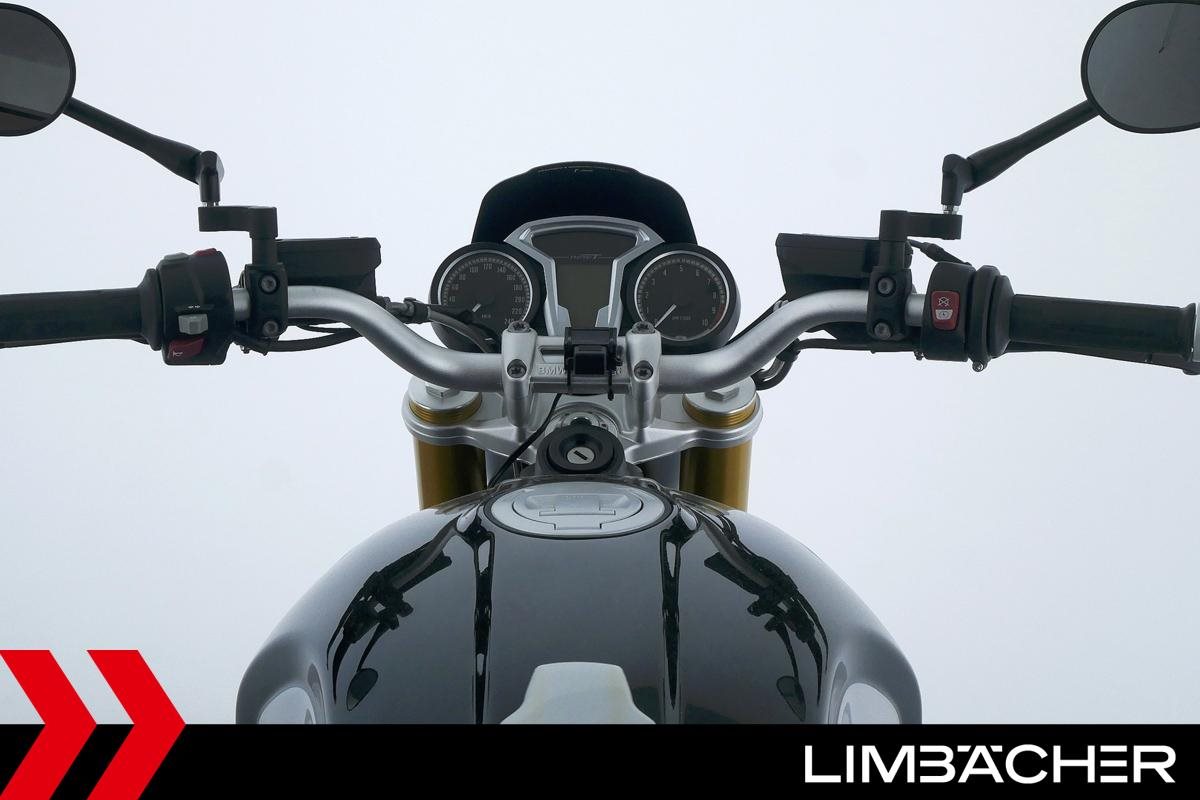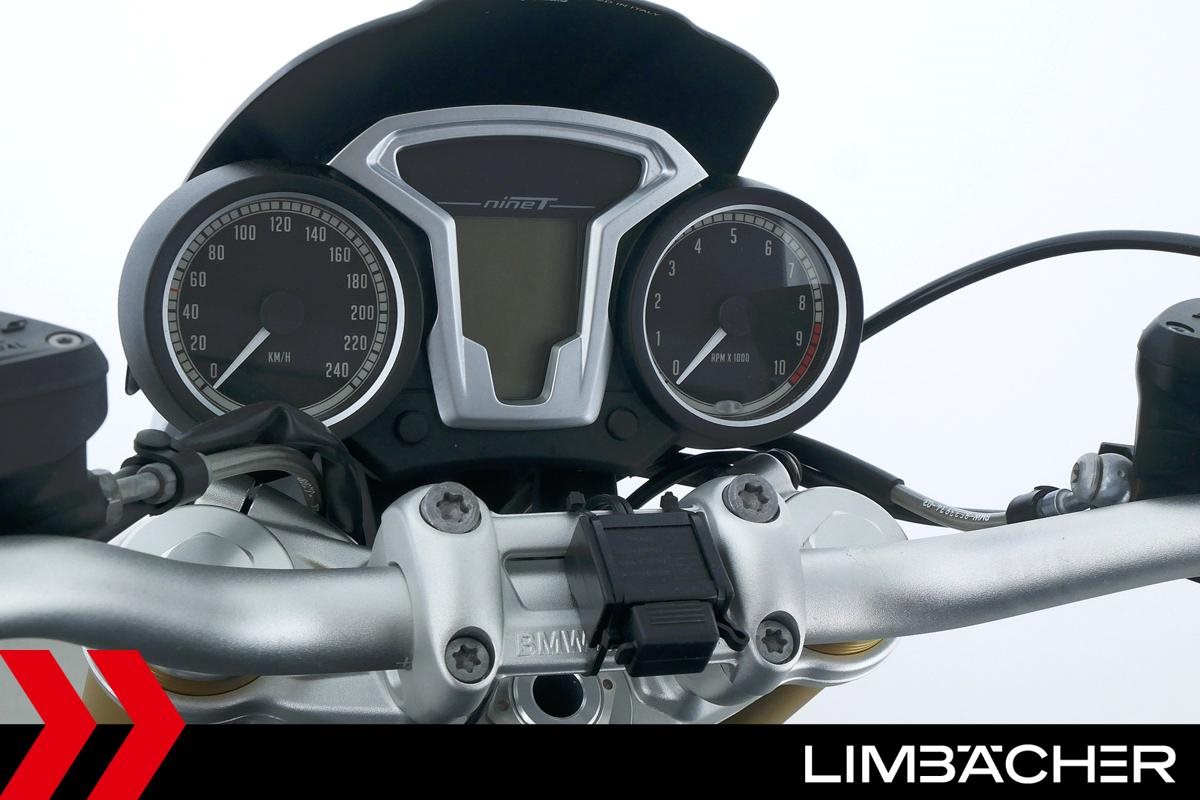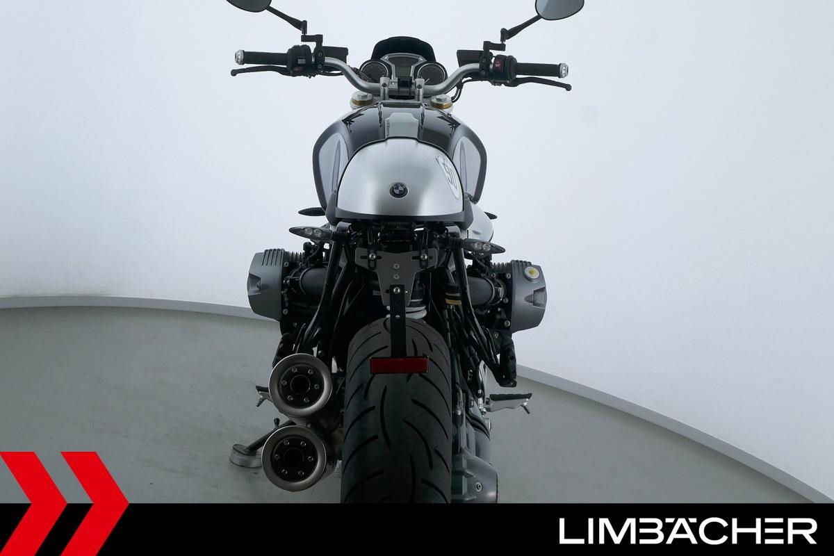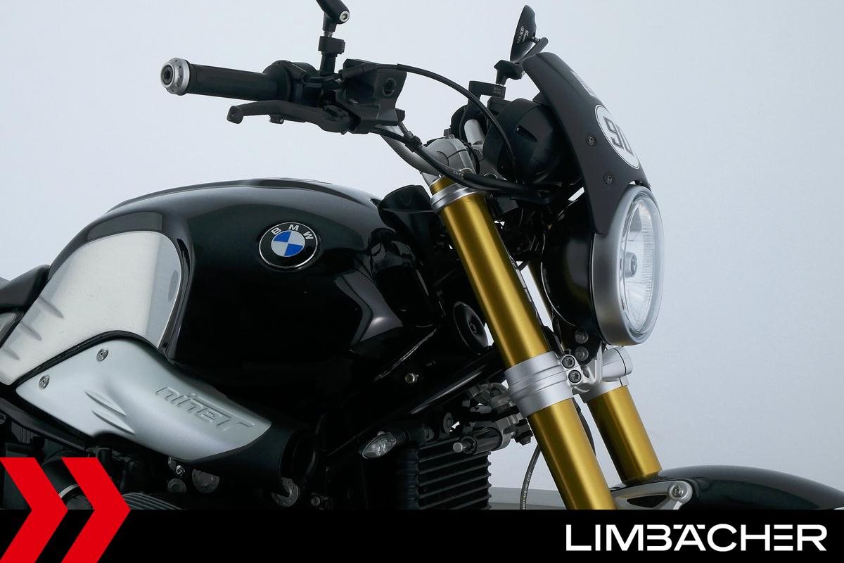 Eine scheckheftgepflegte BMW R nineT aus zweiter Hand in sehr gepflegtem Zustand u.a. mit Akrapovic-Doppelauspuff sowie einem kurzem Kennzeichenhalter.
