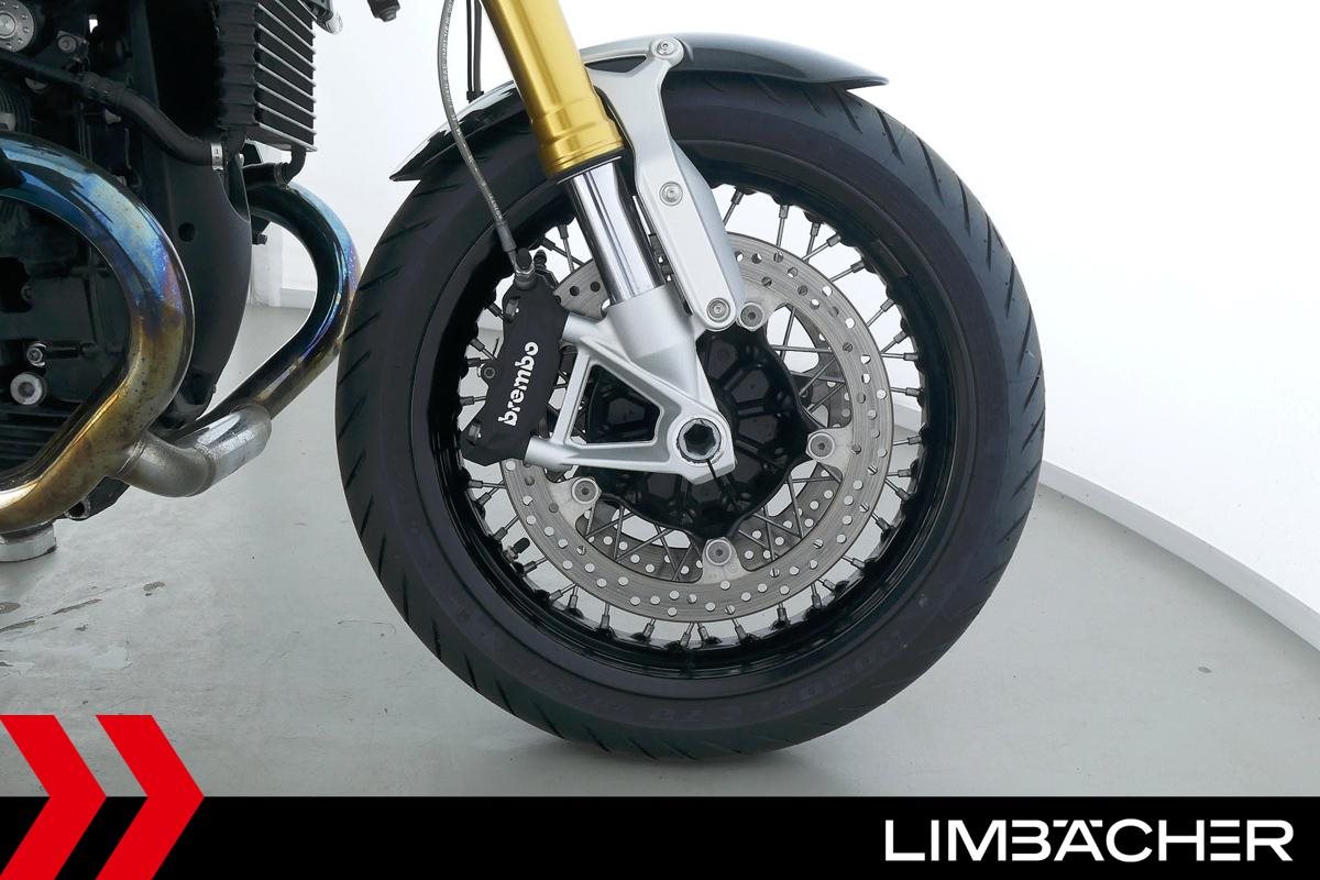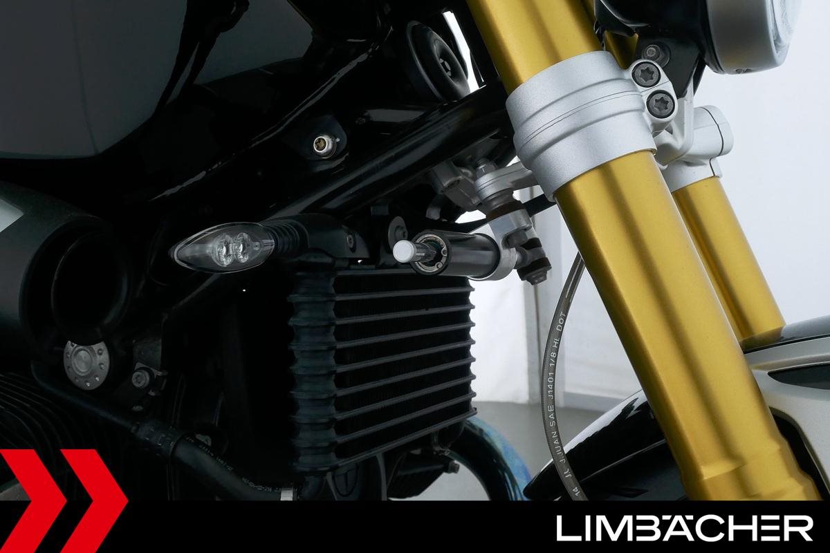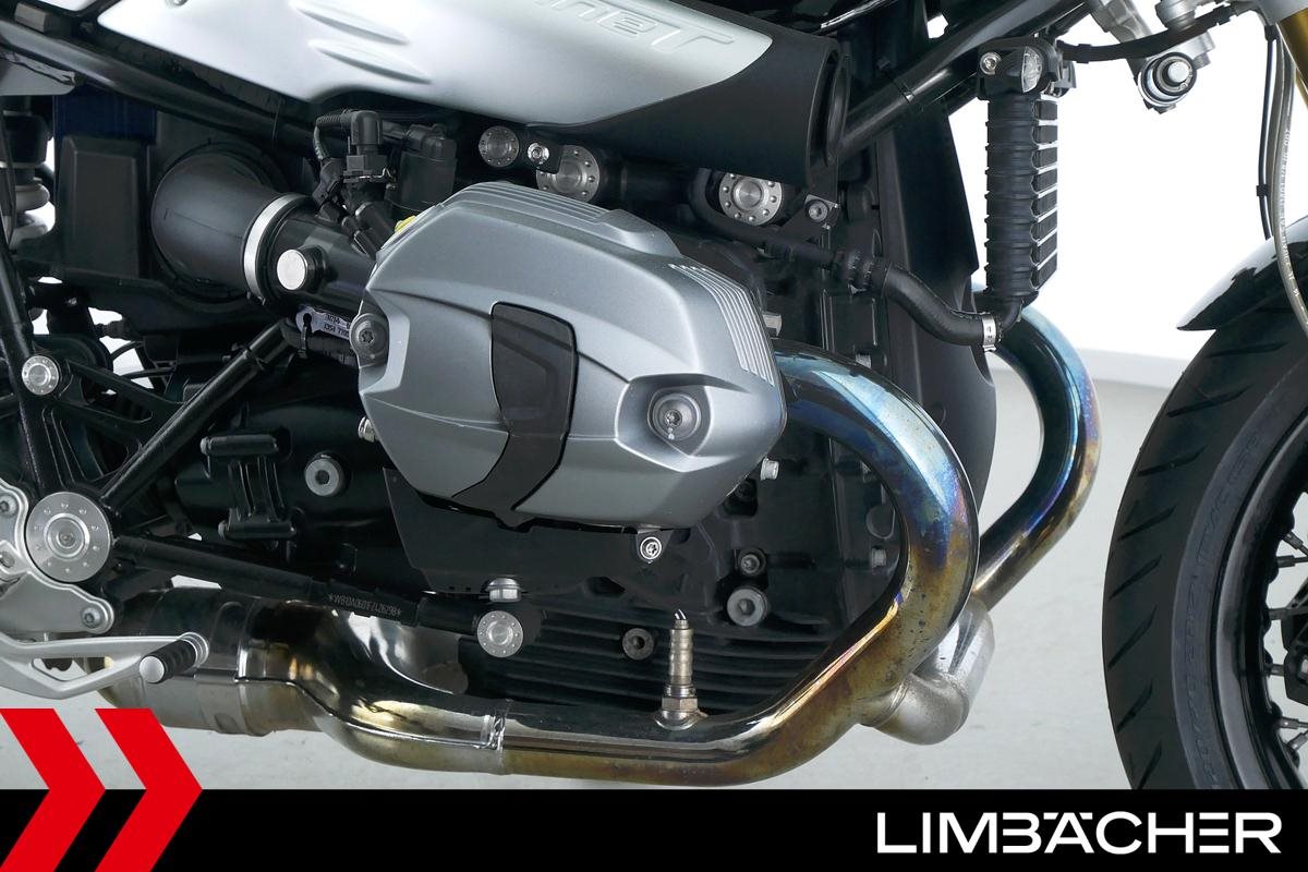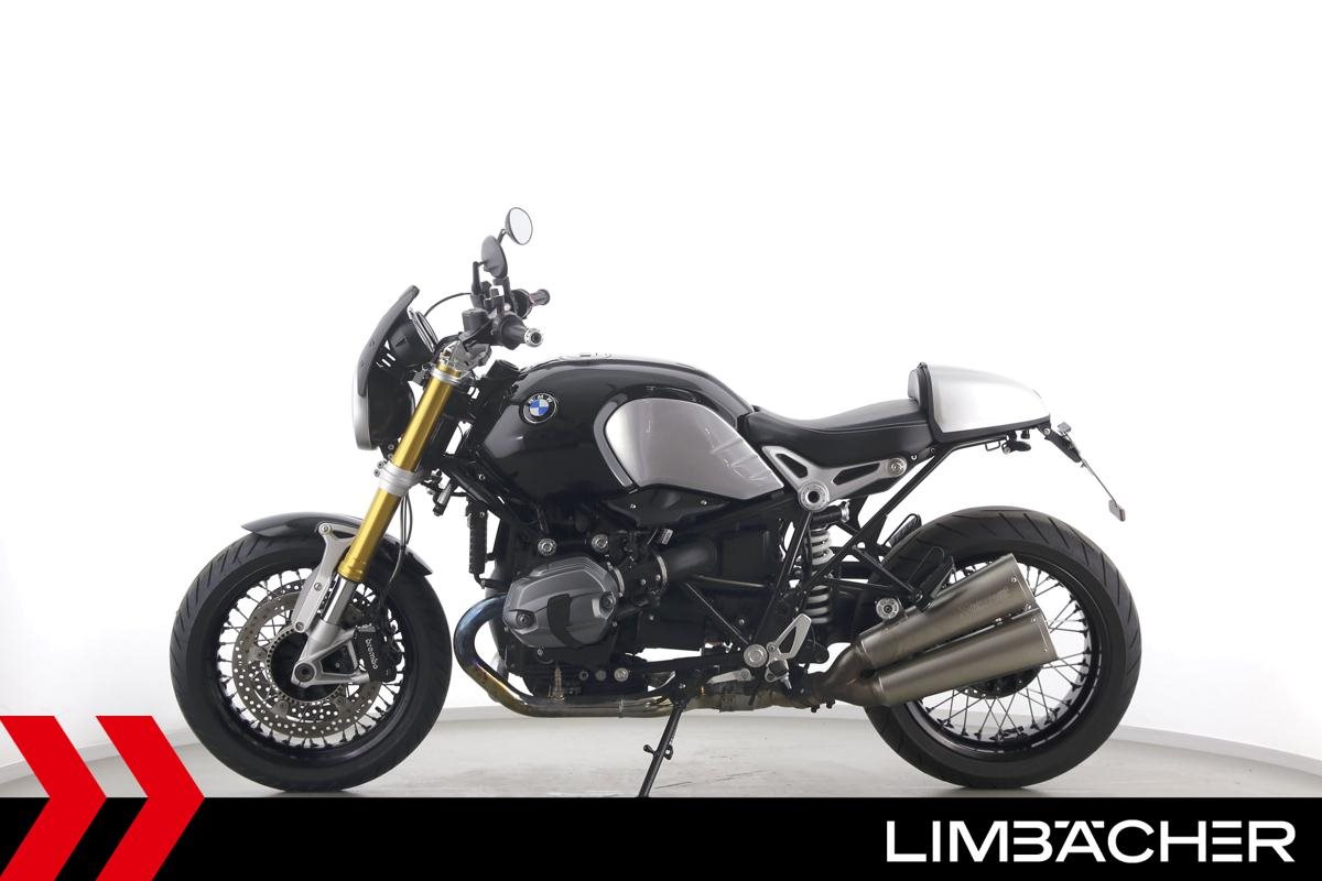 Eine scheckheftgepflegte BMW R nineT aus zweiter Hand in sehr gepflegtem Zustand u.a. mit Akrapovic-Doppelauspuff sowie einem kurzem Kennzeichenhalter.