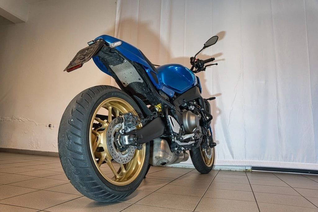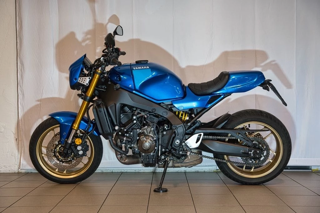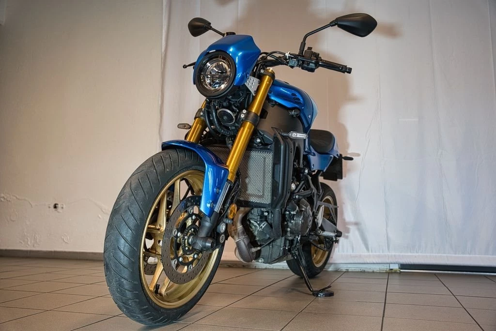 Die Yamaha XSR900 (Modelljahr 2016) ist ein Faster Sons Sport-Heritage-Motorrad, das moderne Technik (MT-09 Basis) mit Retro-Design verbindet. Sie wird von einem 847 ccm Dreizylinder-Motor (115 PS, 87,5 Nm) angetrieben, der für seinen kraftvollen Durchzug bekannt ist. Serienmäßig sind ein Aluminium-Tankcover, Traktionskontrolle, ABS und einstellbare Fahrmodi (D-Mode) enthalten.