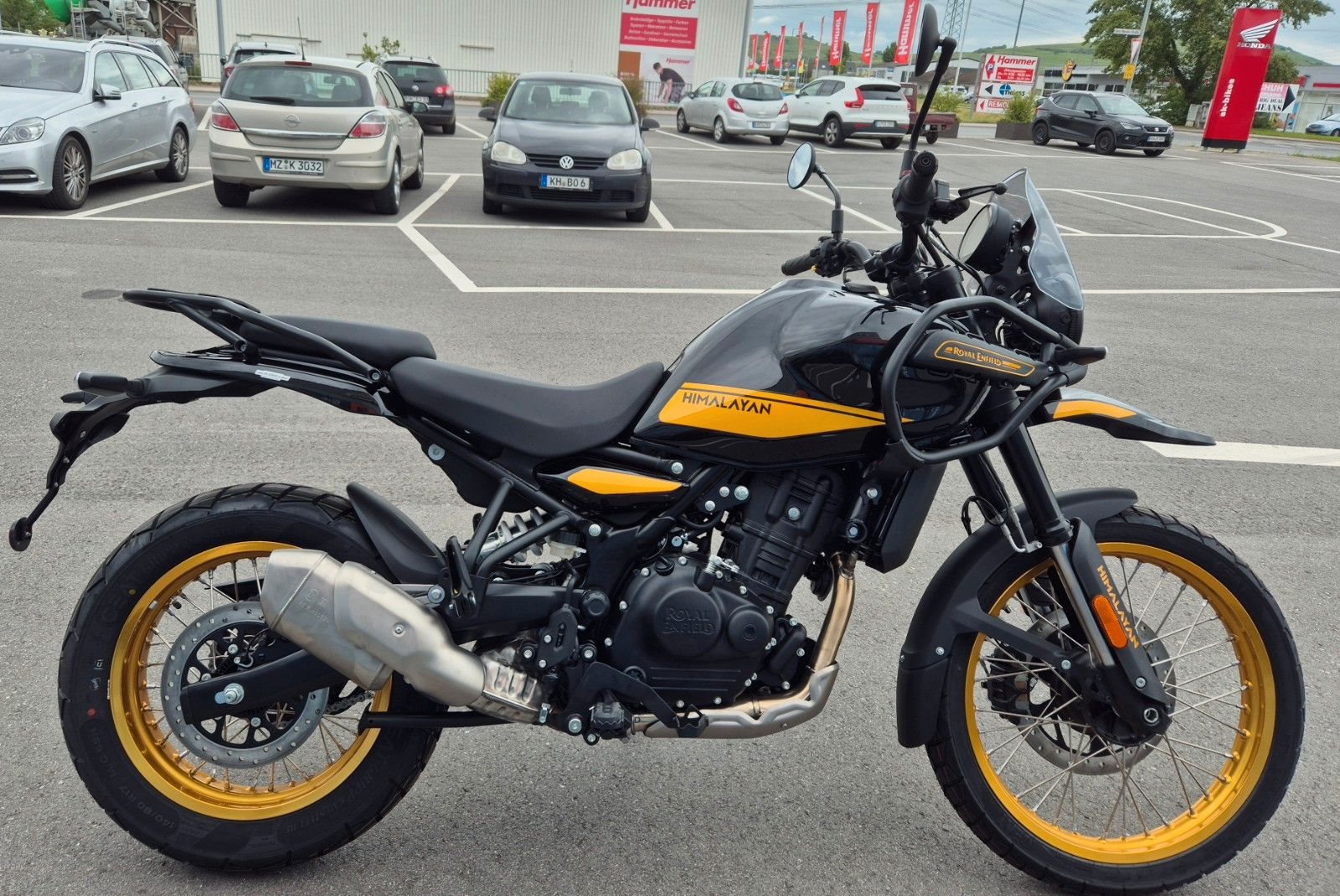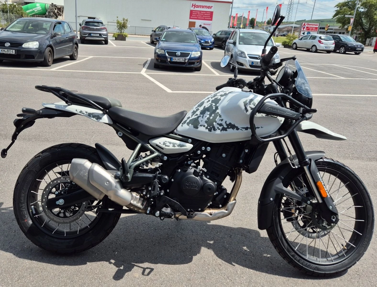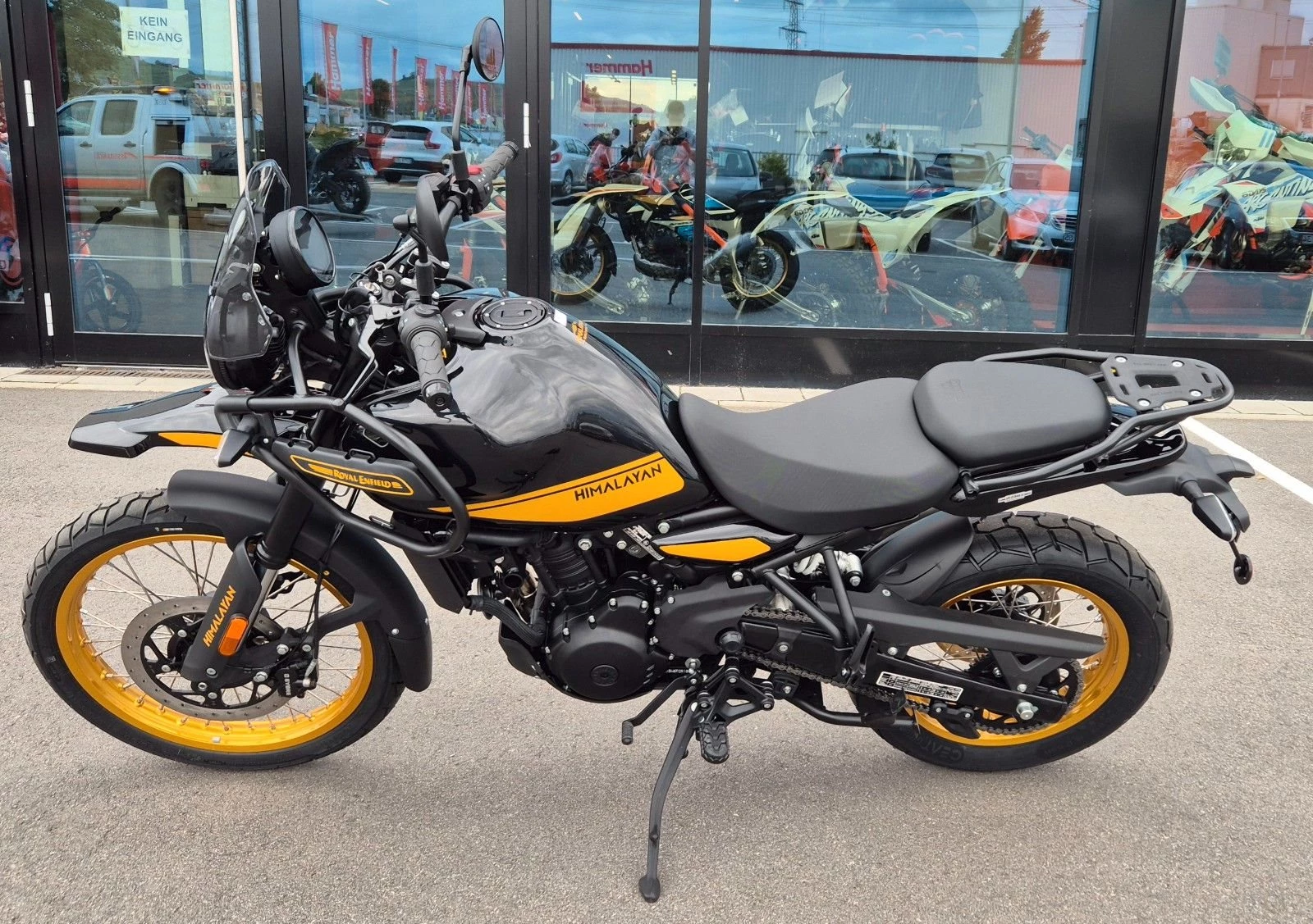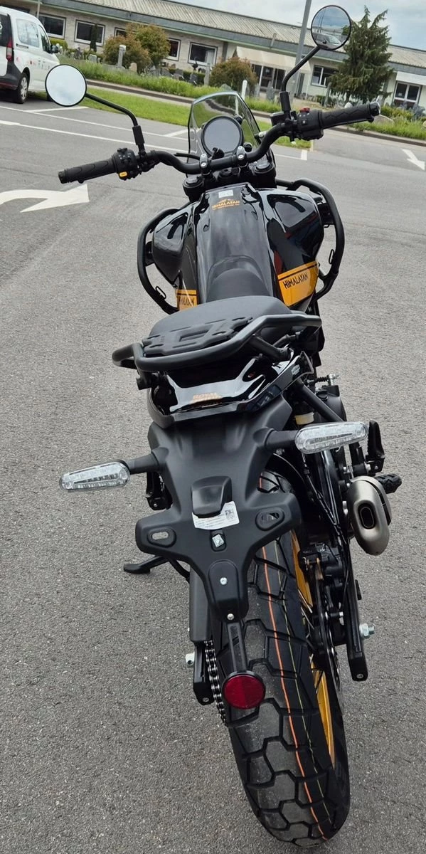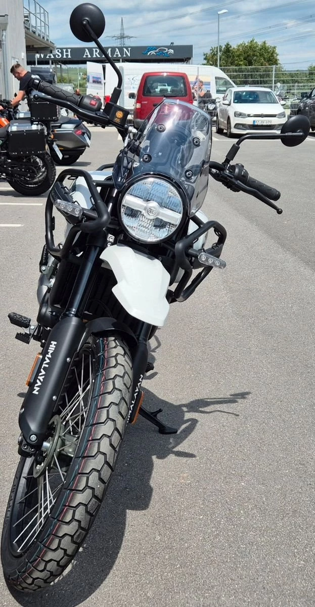 PERFEKT FÜR JEDES ABENTEUER Der beste Motorradrahmen ist einer, der sich dezent im Hintergrund hält. Von der flexiblen Bereifung mit 21 Zoll großem Vorderrad und 17 Zoll großem Hinterrad über trittsichere Enduro-Fußrasten bis hin zu ihrem breiten Lenker - die Himalayan ist für alles gerüstet, auf der Straße und im Gelände. Die schlanke Sitzbank und der schmale Tank sorgen dafür, dass beide Füße fest auf dem Boden zu stehen kommen.