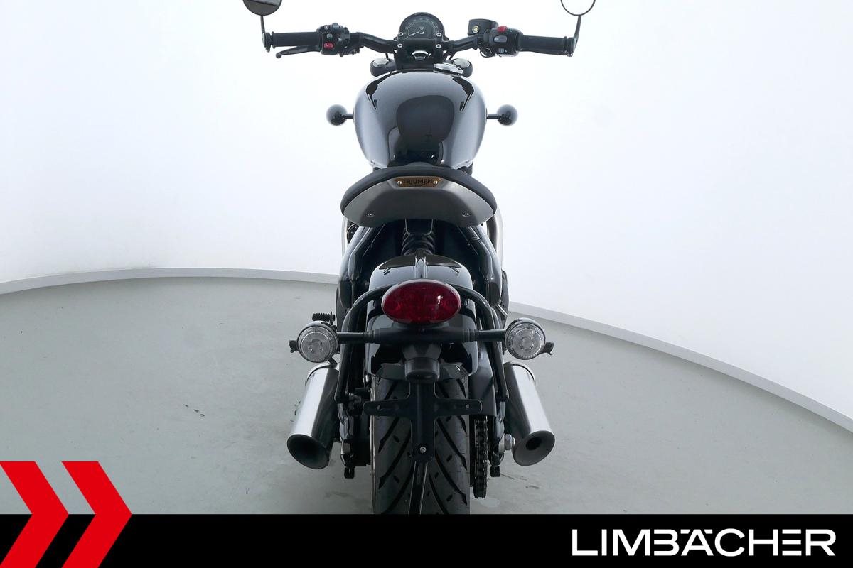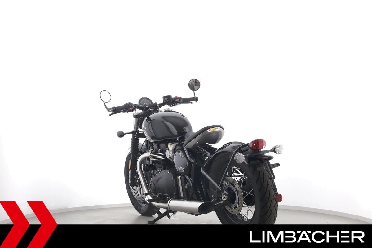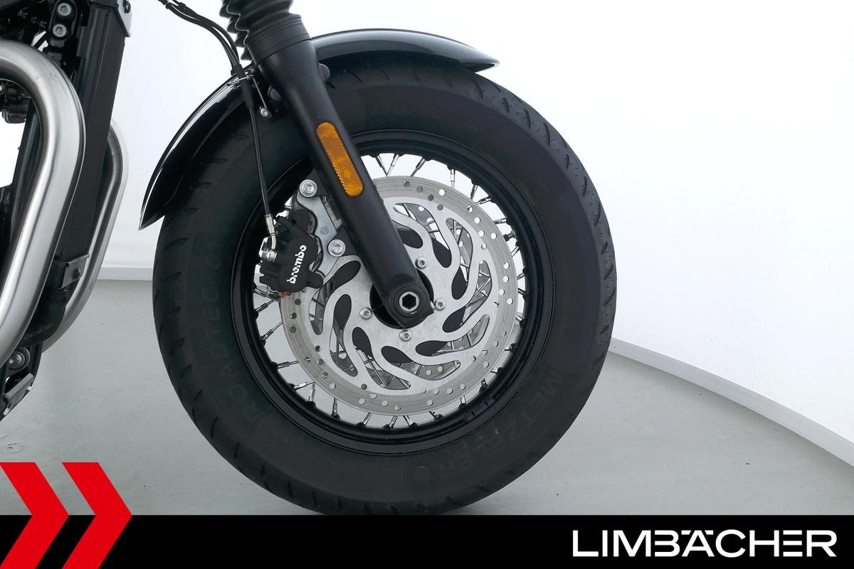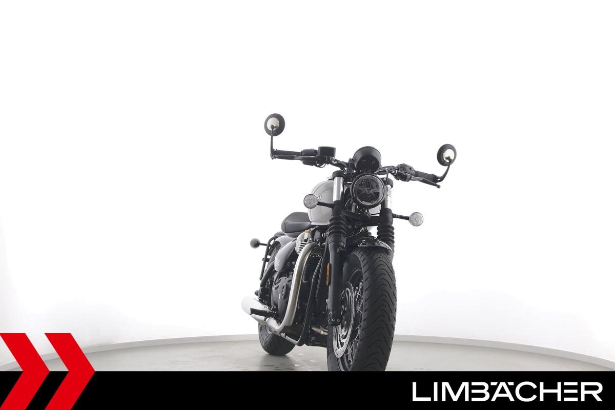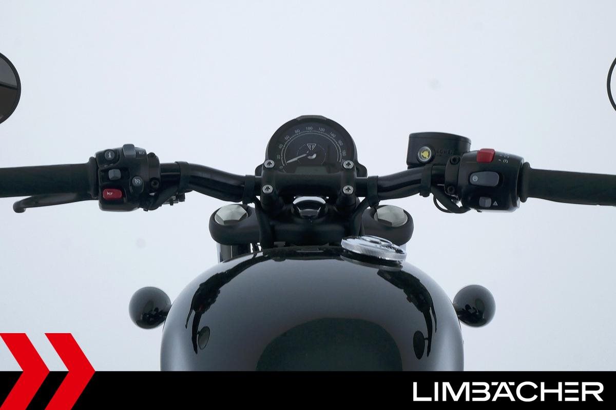 Eine Triumph Bonneville Bobber in Topzustand u.a. mit Temporegelung und Riding-Modes.