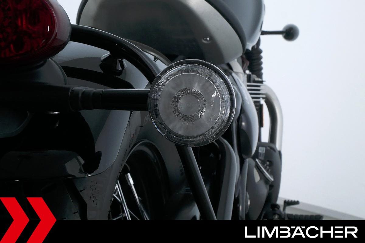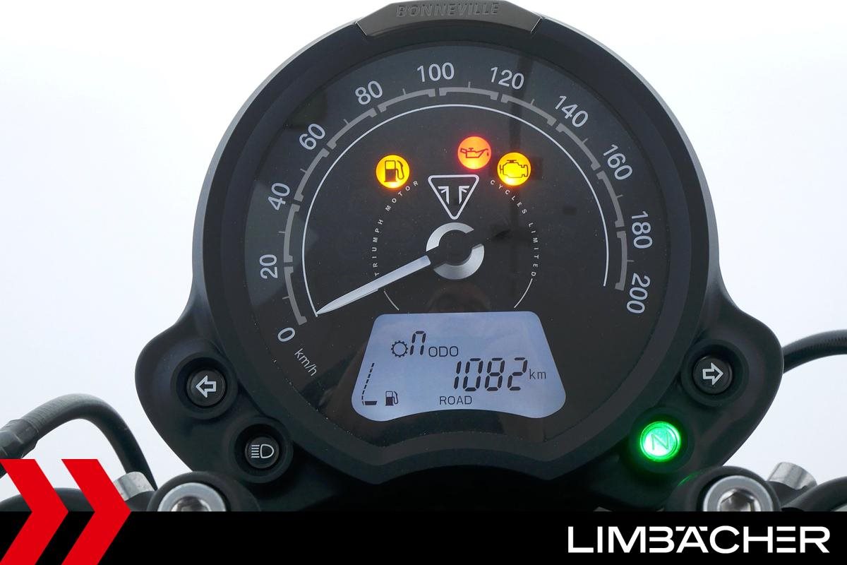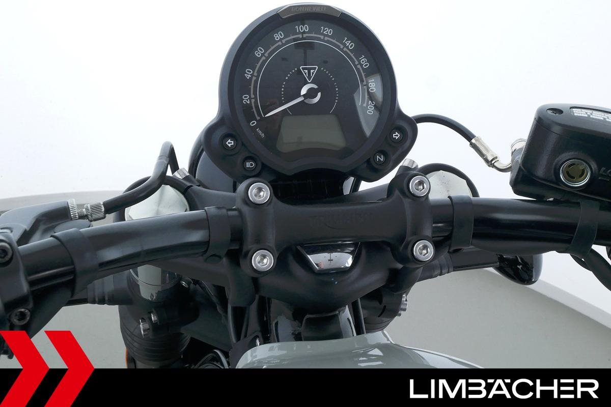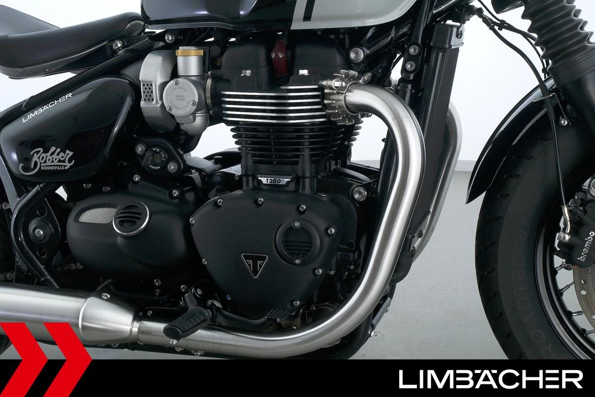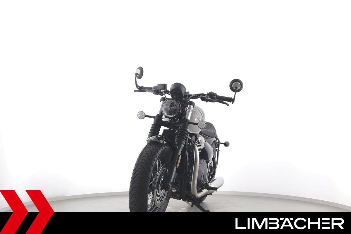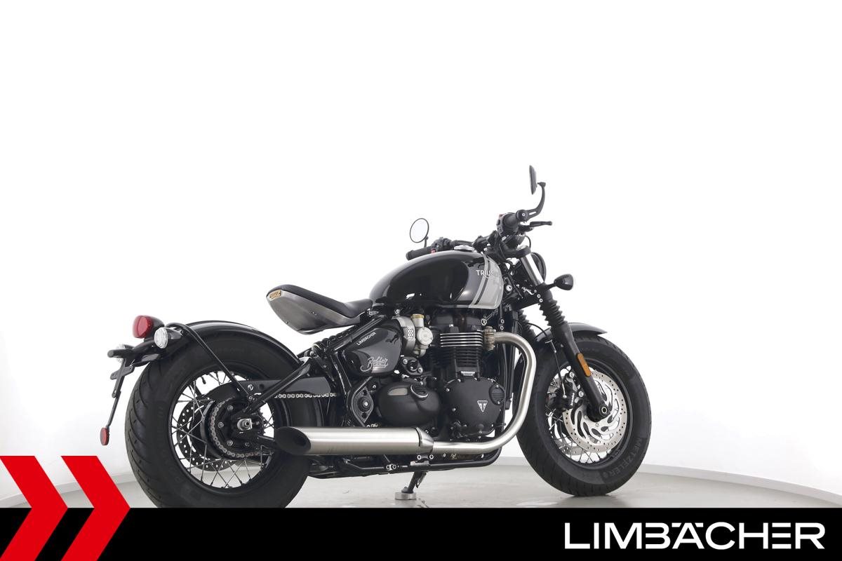Eine Triumph Bonneville Bobber in Topzustand u.a. mit Temporegelung und Riding-Modes.
