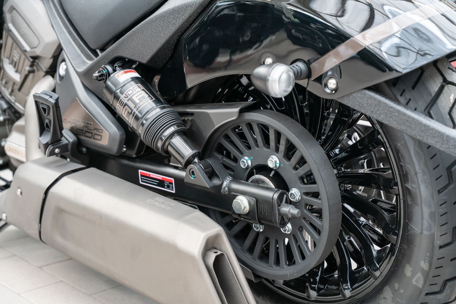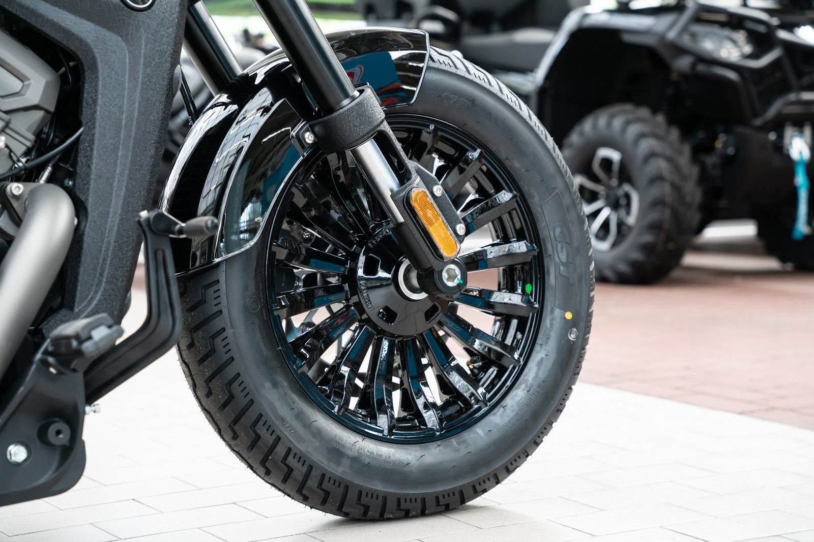 - Reifen: Bullige Optik mit 130/90 R16 vorne und 150/80 R16 hinten