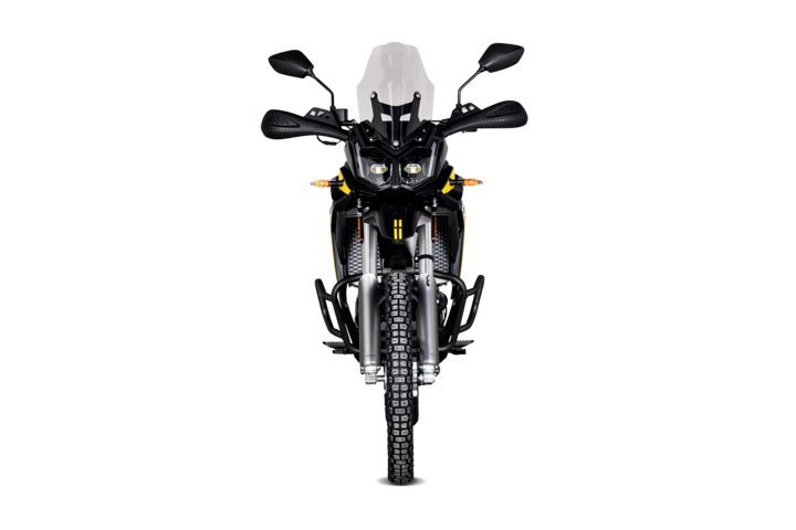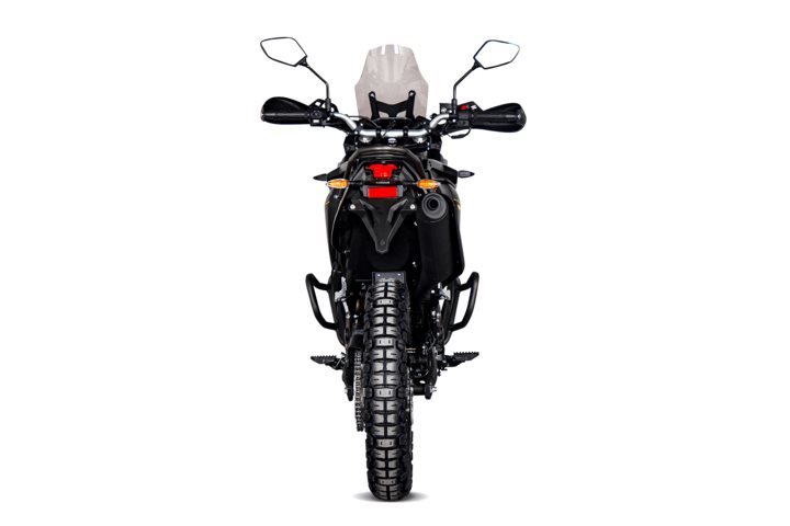 Zur Ausstattung gehören eine Upside-down-Gabel, ein Zentralfederbein mit Ausgleichsbehälter und eine hohe Bodenfreiheit alles Elemente, die auch auf anspruchsvollen Wegen für ein stabiles, sicheres Fahrgefühl sorgen. Grobstollige Reifen liefern den nötigen Grip, während das klare LCD-Display alle wichtigen Informationen übersichtlich anzeigt. LED-Beleuchtung rundum sorgt für Sichtbarkeit bei allen Lichtverhältnissen.