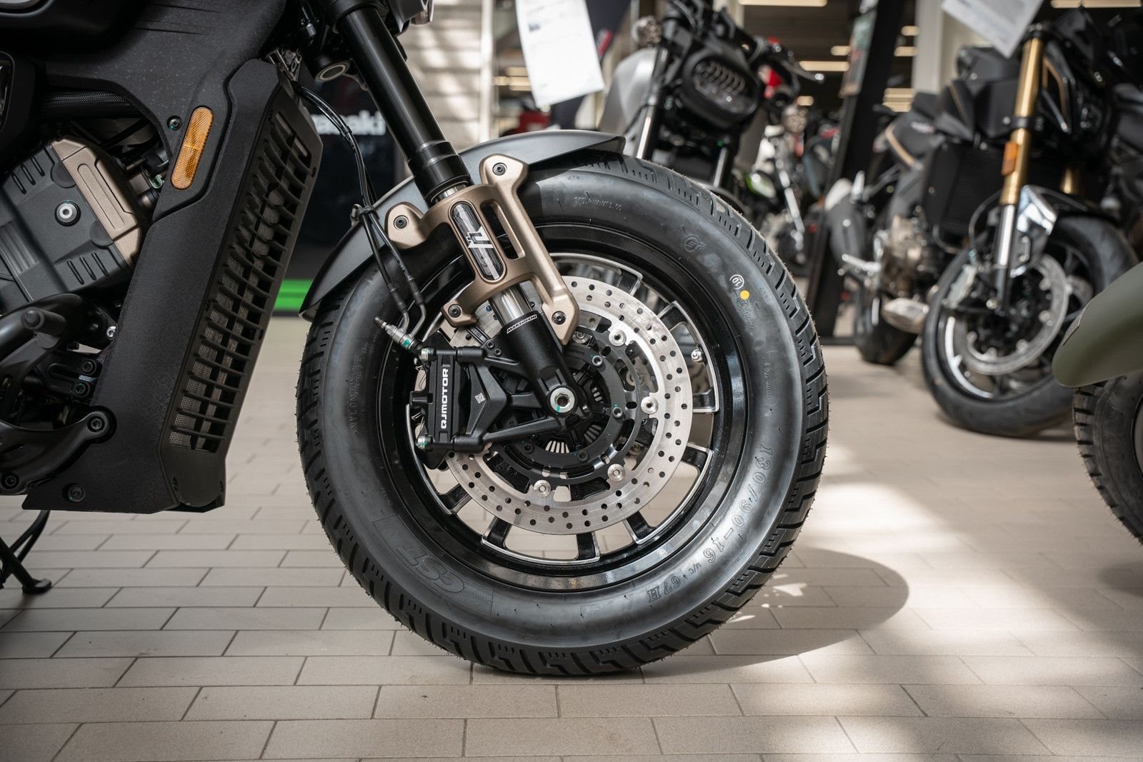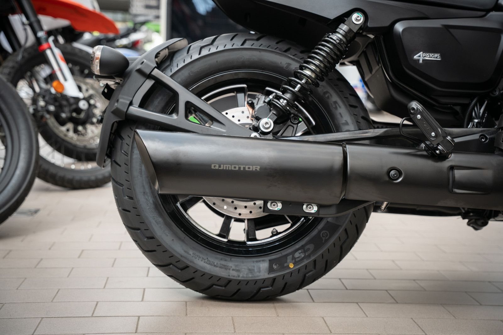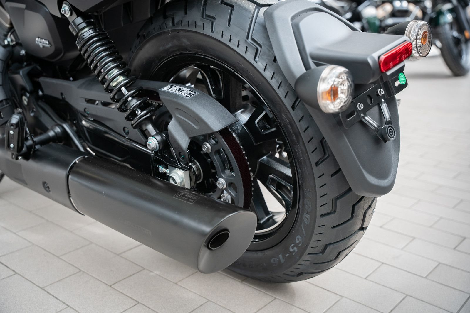 • Bereifung: Massive Optik durch 130er vorne und 180er hinten auf 16-Zoll-Felgen