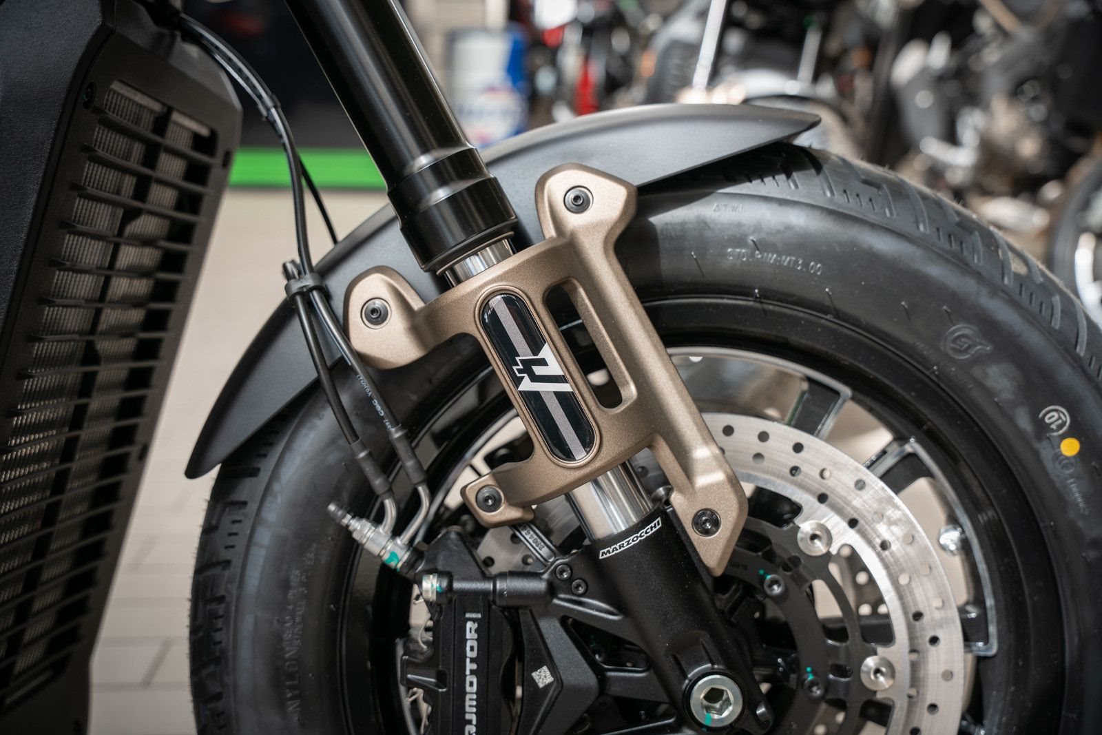 • Fahrwerk: Upside-Down-Gabel von Marzocchi für präzises Handling.