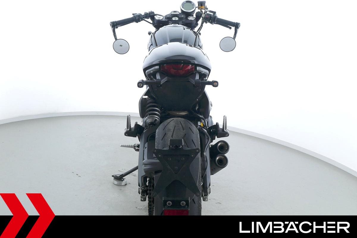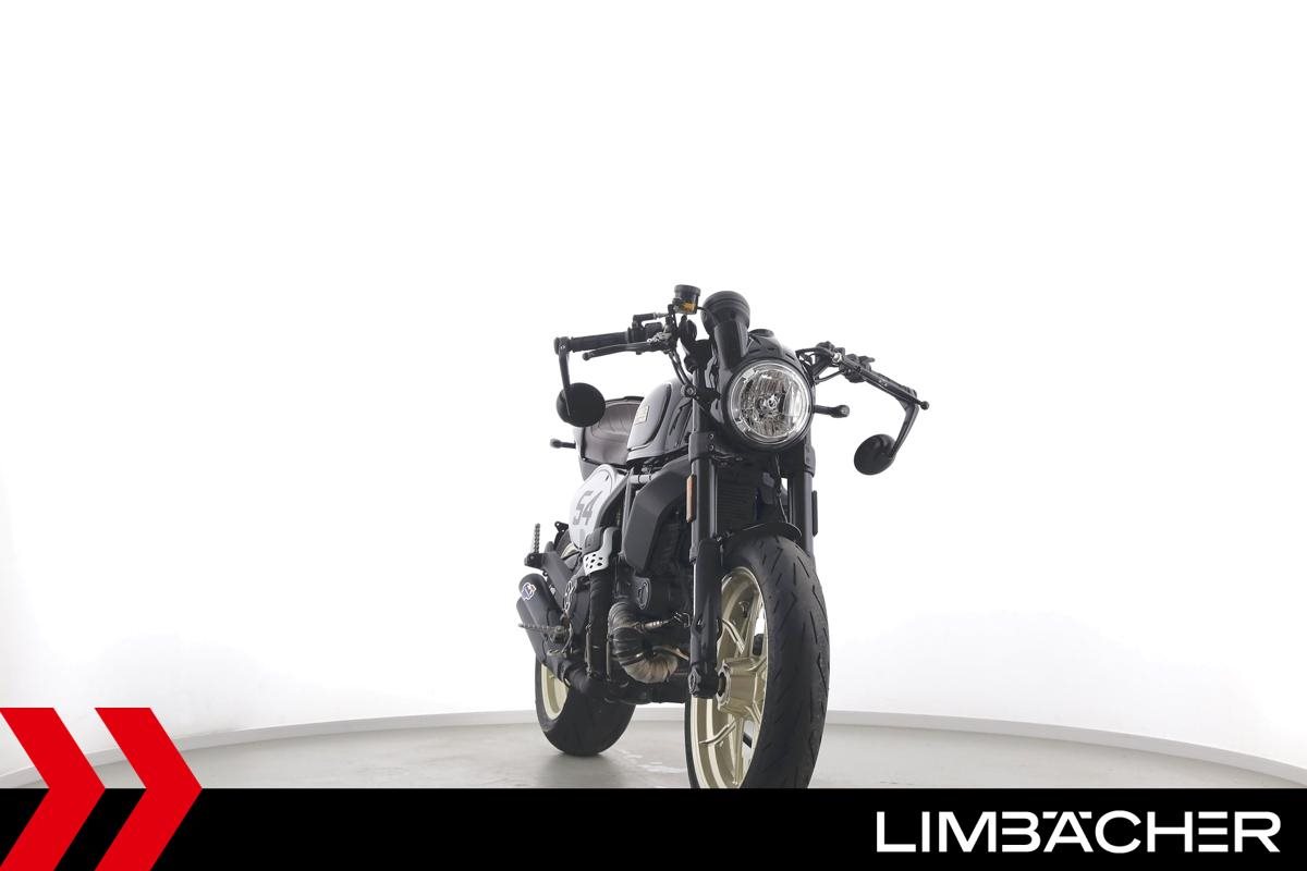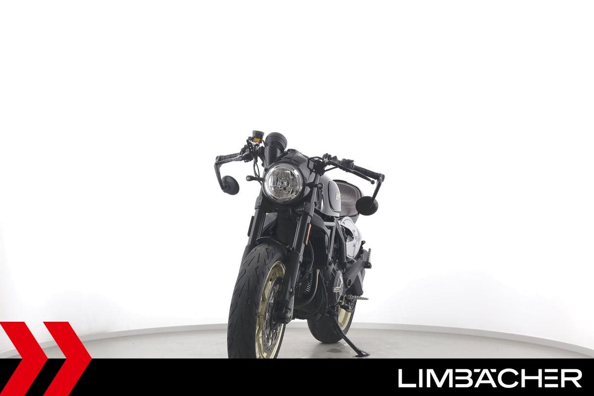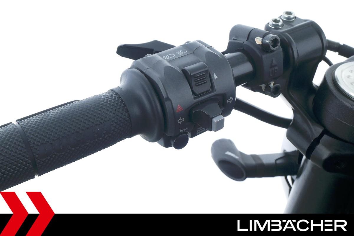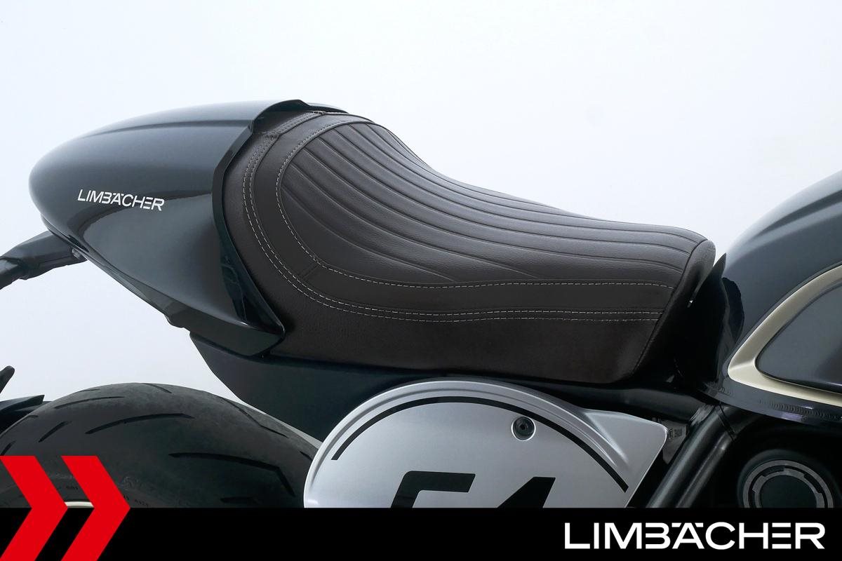 Eine scheckheftgepflegte Ducati Scrambler Café Racer aus zweiter Hand in sehr gepflegtem Zustand u.a. mit Termignoni-Endschalldämpfer sowie Scrambler-LED-Blinkern.
