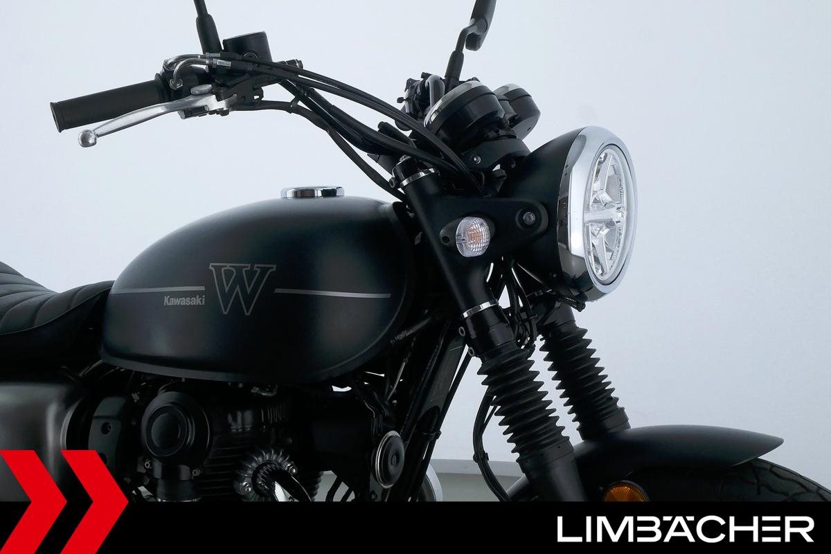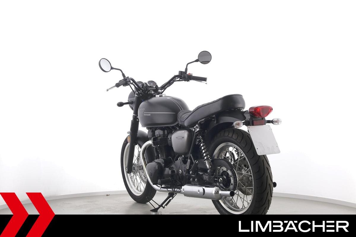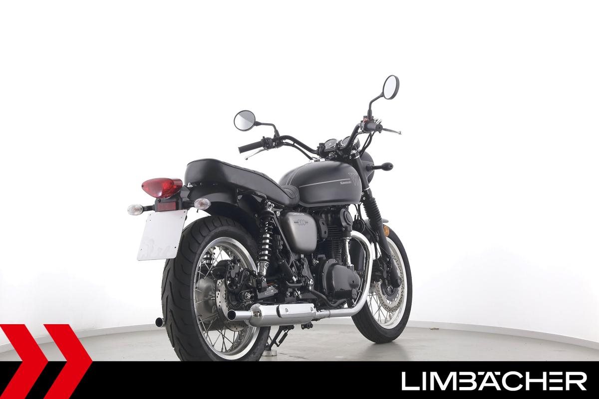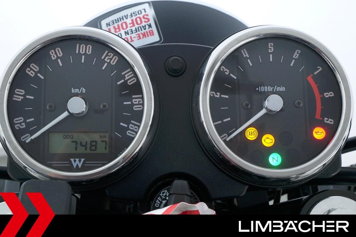 Eine scheckheftgepflegte Kawasaki W 800 aus zweiter Hand in gepflegtem Zustand u.a. mit Originalausstattung sowie einer Doppel-USB-Bordsteckdose.