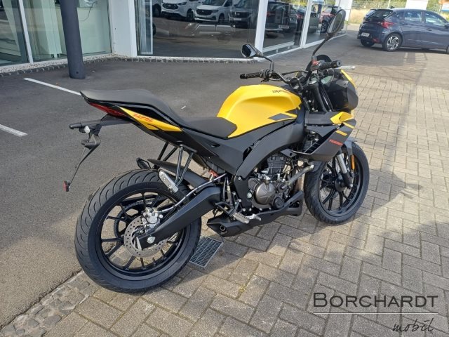 Leistung und KontrolleDynamisch, agil und leicht die Tuono 125 teilt denselben Geist wie die hochklassigen Aprilia Modelle: serienmäßige (abschaltbare) Traktionskontrolle, Zweikanal-ABS von Bosch und ein flüssigkeitsgekühlter Einzylindermotor mit Vierventiltechnik. Dieser Euro-5+ konforme Motor ist bereit, junge Fahrer mit jeder Fahrt zu begeistern. Dank des großzügigen 14,5-Liter-Tanks überzeugt sie zudem mit hoher Reichweite und Effizienz.