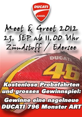 Im Rahmen des Meet & Greet 2012 bieten wir hier mal wieder kostenlose Probefahrten auf den aktuellen Modellen an.