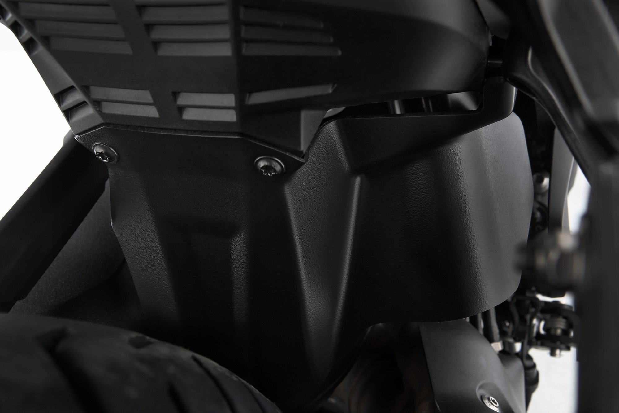 Die blitzsauber integrierte Wunderlich Konstruktion verringert das Gischtaufkommen für Fahrer und Beifahrer im Bereich der Füße und Unterschenkel spürbar und nachhaltig. Sie reduziert die Ablagerung abrasiver, aggressiver Verschmutzungen On- und Offroad und schützt auf diese Weise Technik, Lack, Fahrer und Passagier.