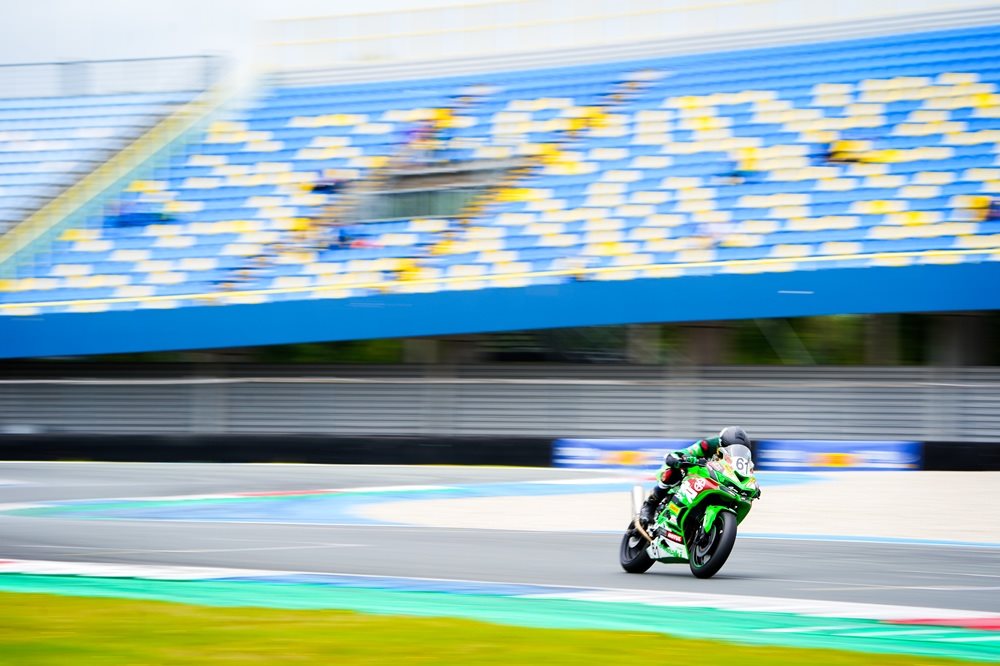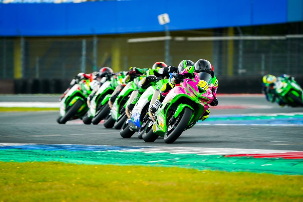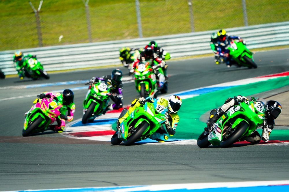 Der vierte und vorletzte Lauf des Kawasaki Ninja ZX-4RR Cups im Rahmen der Internationalen Deutschen Motorradmeisterschaft (IDM) führte das Starterfeld auf die legendäre TT-Strecke in Assen. Der Cathedral of Speed, wie der niederländische Kurs in der Szene genannt wird, gilt mit seinen schnellen Richtungswechseln, langen Kurvenkombinationen und dem traditionsreichen Schlussteil als eine der spektakulärsten Motorrad-Rennstrecken der Welt.