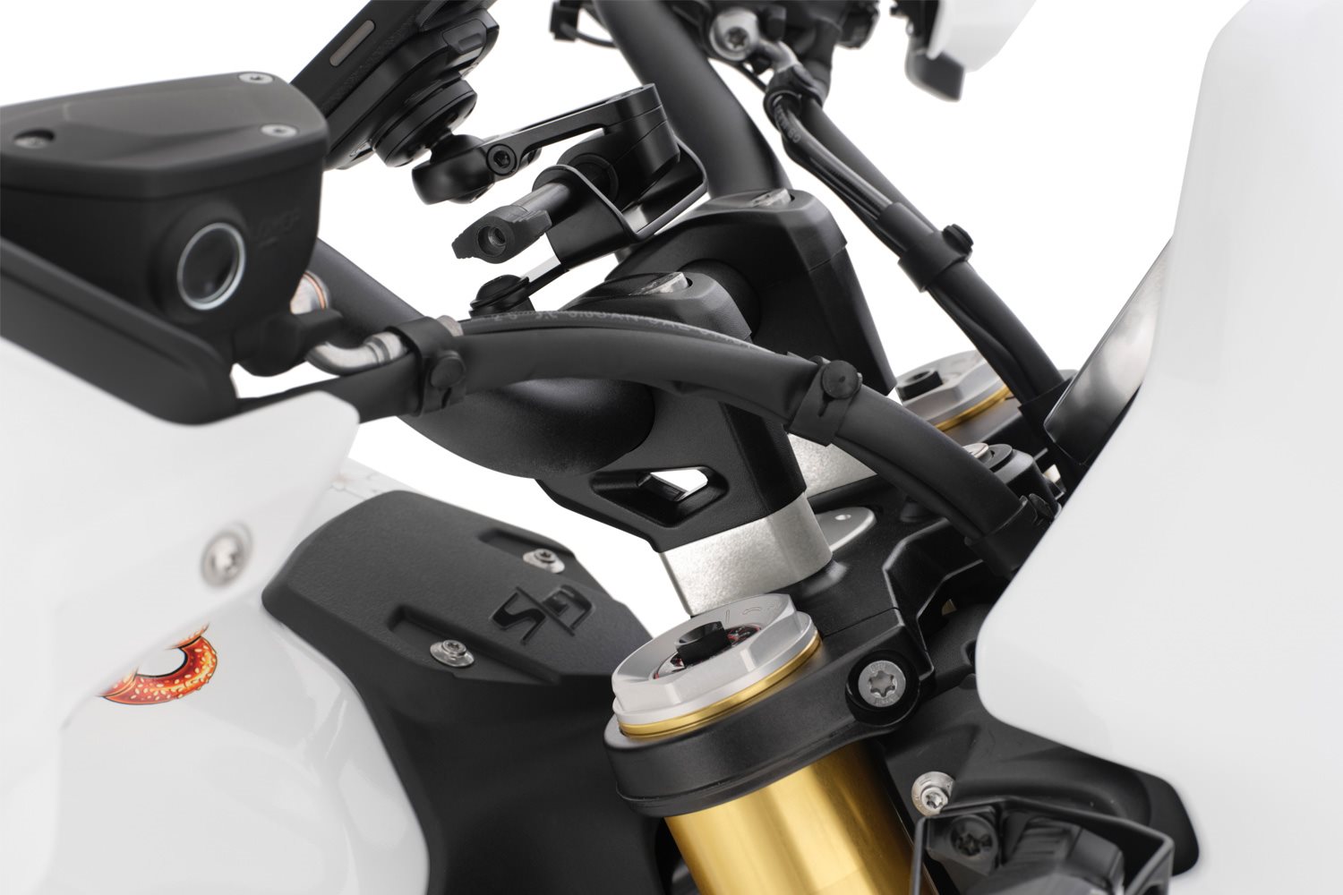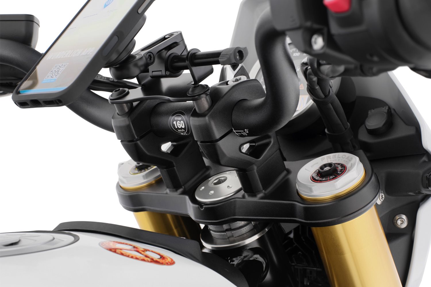 Die von den Wunderlich-Entwicklern speziell konstruierte Lenkererhöhung ERGO erhöht den Lenker moderat um 20 Millimeter. Die ergonomischen Effekte sind beträchtlich, wirken sie sich doch entspannend auf die gesamte Rücken-Muskulatur und die Arme aus und entlasten zugleich Wirbelsäule, Becken und Steißbein. Damit werden die Tourentauglichkeit und der Komfort enorm verbessert.