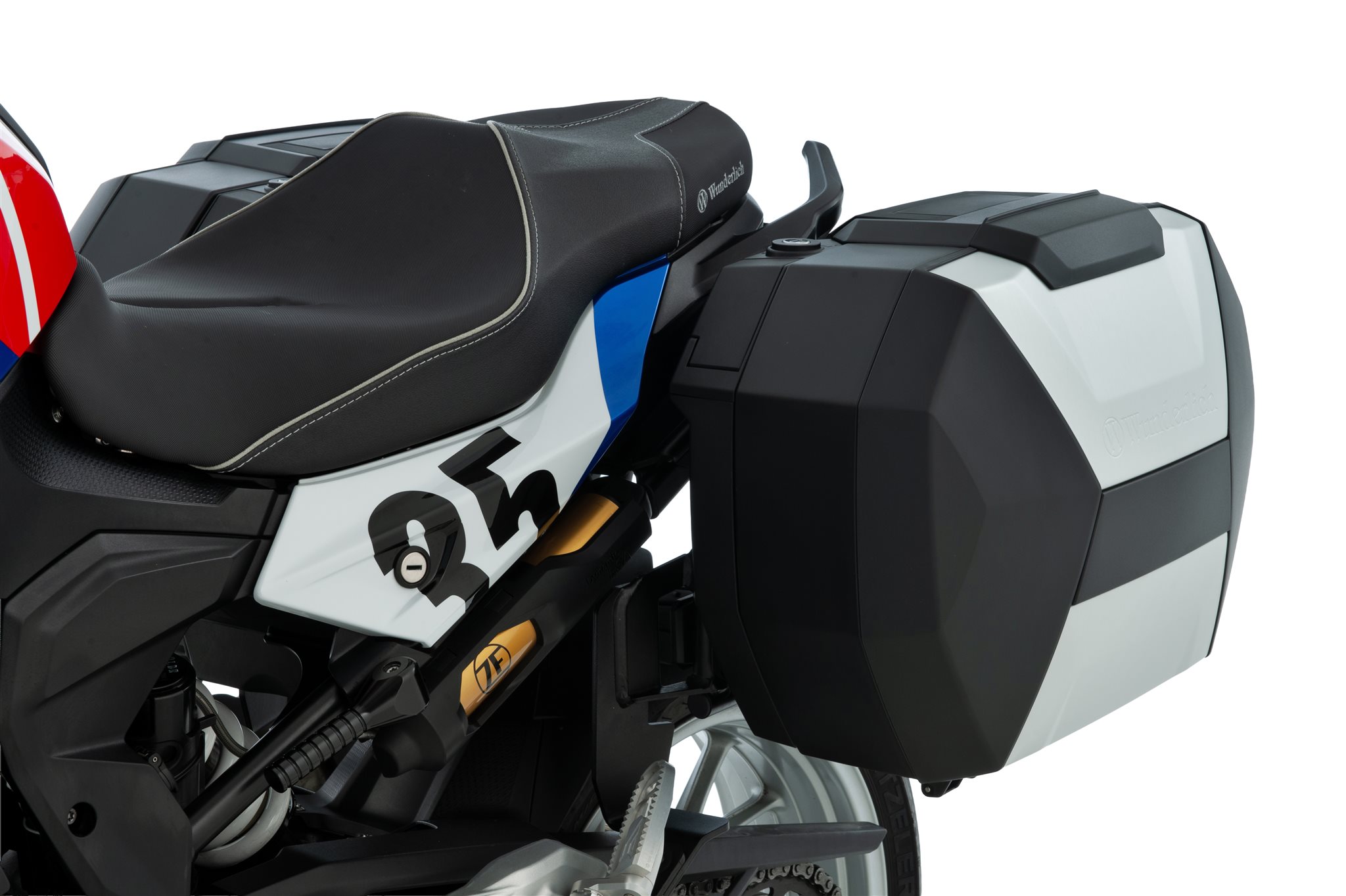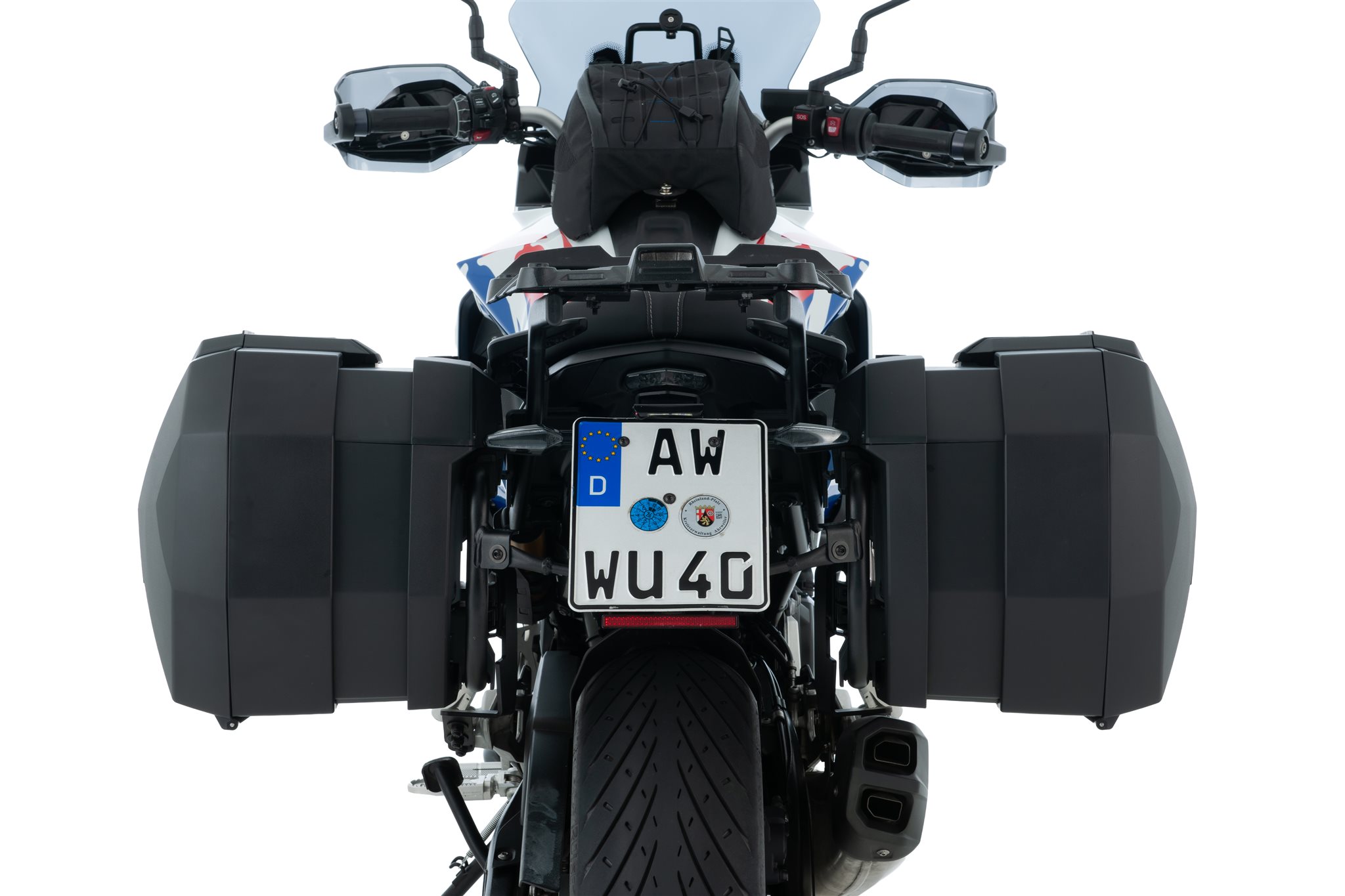 Der Vorteil der Wunderlich X-CASE X30 Variokoffer ist der 70-Millimeter-Auszug: Damit lassen sich die Koffer von 20 auf 30 Liter Stauvolumen pro Seite erweitern. Umgekehrt, fährt man die Auszüge ein, ist das Bike um 140 mm schmaler perfekt fürs Handling, sportliche oder urbane Passagen und überall, wo es eng werden kann.
