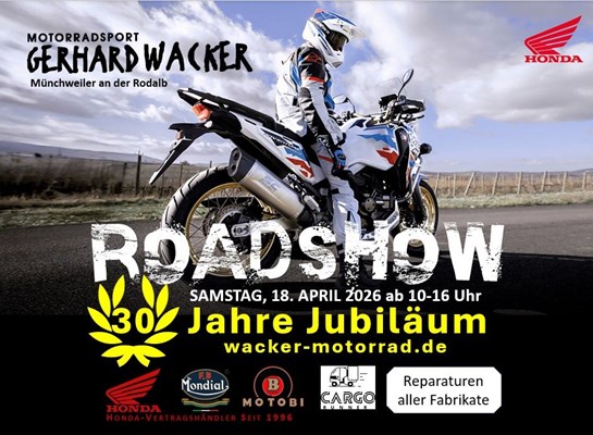 30 Jahre Leidenschaft, Kompetenz und Begeisterung für Motorräder: Motorradsport Wacker sagt Danke! Dieses besondere Jubiläum möchten wir gemeinsam mit Euch feiern und zwar am 18. April 2026 im Rahmen der großen Honda-Roadshow.