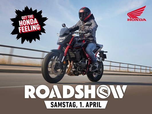 Die Honda Roadshow, das legendäre Treffen für alle Motorradfreunde mit Benzin im Blut, ist wieder am Start. Feiern Sie mit uns den Saisonauftakt und lassen Sie sich begeistern von unserer einzigartigen Modellvielfalt. Mit Highlights wie der neuen CB750 Hornet im aufsehenerregenden Streetfighter-Look. The Power of Dreams