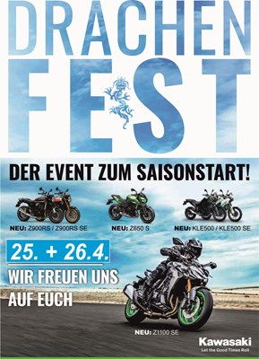 - Kurze Testfahrten* mit vielen neuen Kawasaki und KTM Modellen am Samstag und Sonntag möglich
