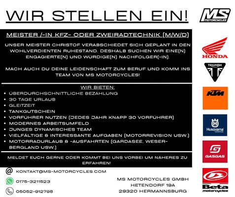 Nutze die Chance und mach deine Leidenschaft zum Beruf! Wir haben immer die aktuellsten Maschinen am Lager und die vielfältigsten Aufgaben im Angebot (Motorrevision, Restaurationen u.v.m)