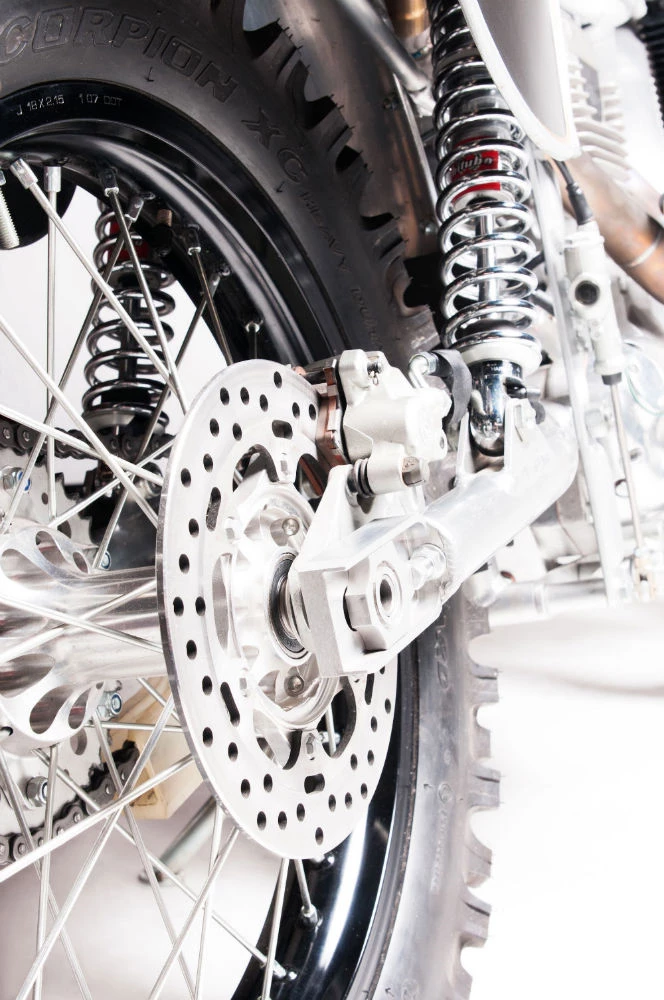 Für die notwendige Verzögerung sorgt auf der Borile vorne eine Einzelscheibe und hinten eine Scheibe. Die Brammo vertraut vorne auf eine Doppelscheibe Vierkolben-Zange von Brembo. Hinten ist eine Scheibe Zweikolben-Zange von Brembo verbaut.
