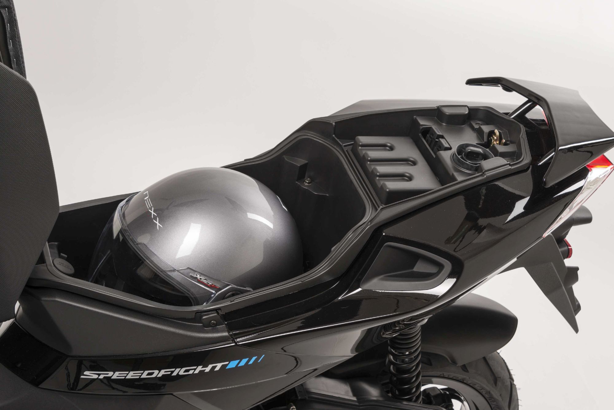 Der Speedfight 4 50 4T setzt vorne auf eine Telegabel Upside-Down und hinten arbeitet ein Monofederbein.