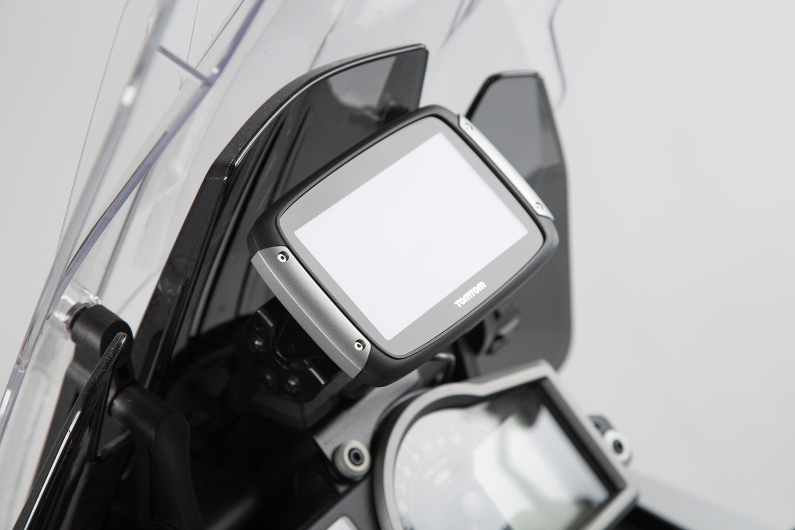 Halteblech mit universellem Lochmuster gibt den üblichen Navi-Modellen und Navi Case Pro Gerätetaschen oder Hardcases von SW-MOTECH sicheren Halt
