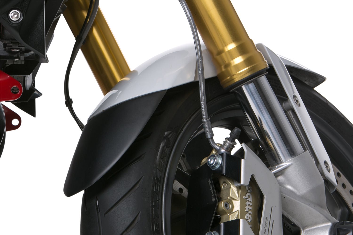 Der Original-Kotflügel baut zu kurz! Die Folgen sind verdreckte Motorengehäuse, Steinschlagschäden und unnötige Wasseraufwirbelungen.