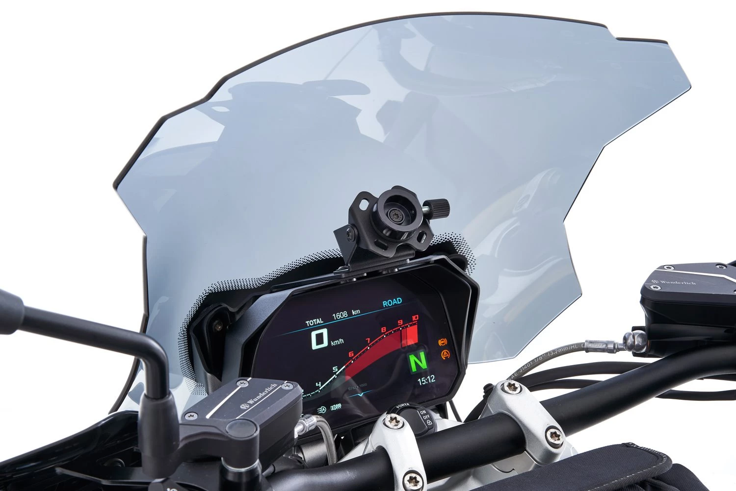 Dieser Adapter dient dazu, die beliebte, individuell einstellbare und vielseitig einsetzbare MULTICLAMP-Aufnahme an unseren Universal-Geräteträgern zu montieren. Der Adapter bildet so die ideale Basis zur Aufnahme weiterer Systemhalter, wie beispielsweise der ActionCam- oder Smartphone-Halterung. Dies ist die clevere Lösung, wenn es darum geht, Smartphone und ActionCam bedienergonomisch und das Smartphone zusätzlich sichtergonomisch in der natürlichen Sichtlinie sicher zu montieren, beispielsweise, wenn es als Navi genutzt werden soll. So hat der Fahrer die Straße und das Smartphone oder die ActionCam stets gleichzeitig im Blick. Diese Anordnung hat sich bewährt und sorgt für spürbar mehr Komfort beim Fahren und Bedienen und erhöht auf diese Weise die Verkehrssicherheit. Die MULTICLAMP Systemkomponente werden einfach per Quick Release System miteinander verbunden. Fakten Funktion Technische Daten Besondere Merkmale ProduktkategorieBeschreibung zu Adapter MULTICLAMP für Geräteträger Universal- schwarz anzeigen