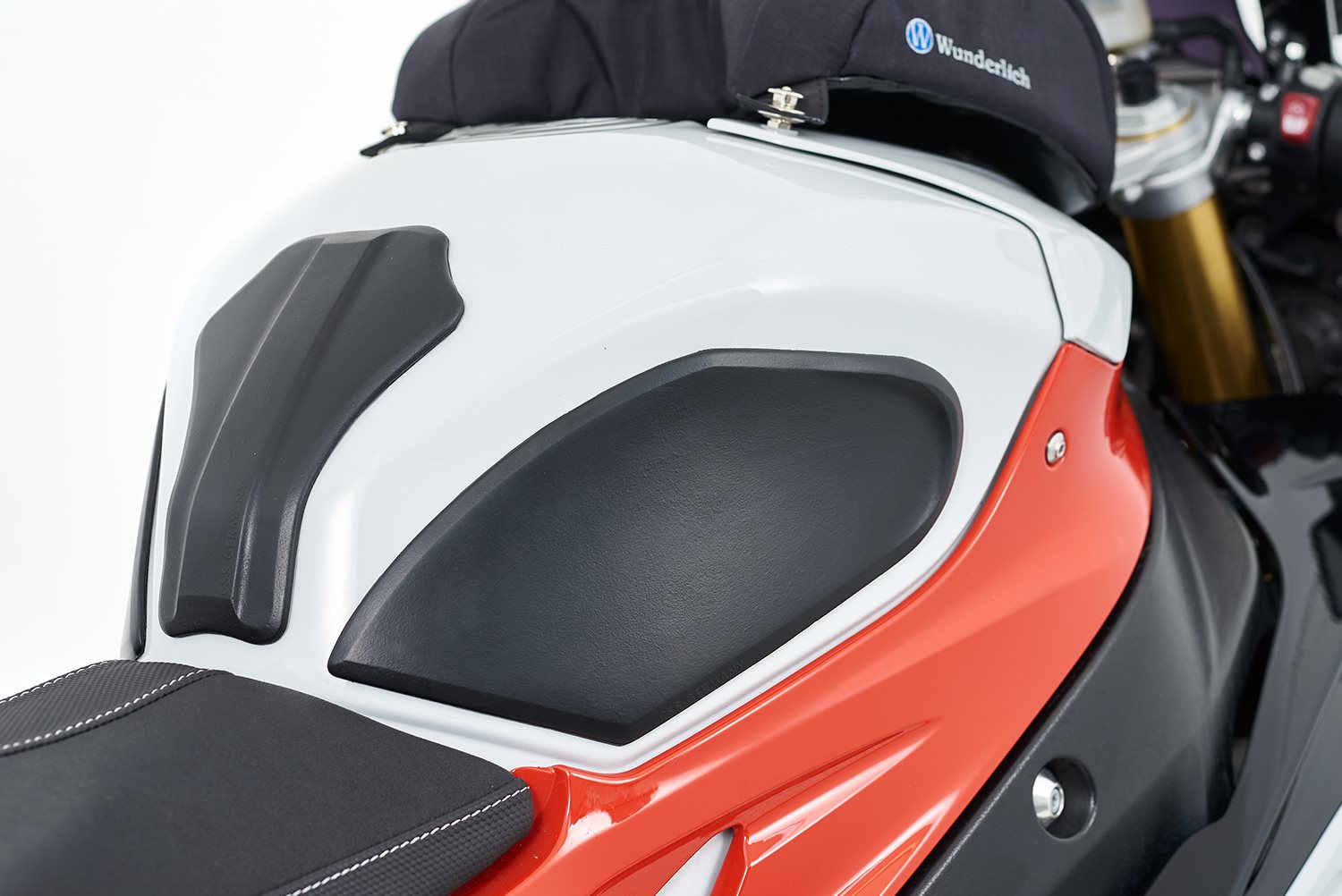 Das dreiteilige Tankpadset ist auf das Design der BMW abgestimmt. Die Pads schützen an allen Kontaktstellen effektiv vor Kratzern, Beschädigungen und Abrieb. Die seitlichen Pads verbessern den Knieschluss und vermitteln durch erhöhte Haftung einen direkteren Kontakt zum Motorrad. Damit werden Fahrgefühl und Fahrspaß deutlich gesteigert. Der Werkstoff besteht aus hochwertigem und griffigem schwarzem Kunststoff, ist stoßabsorbierend und leicht genarbt. Die Pads sind selbstklebend ausgerüstet. Die Fakten: Funktion Technische Daten BesonderheitenBeschreibung zu Tankpadset (3-teilig)- schwarz anzeigen