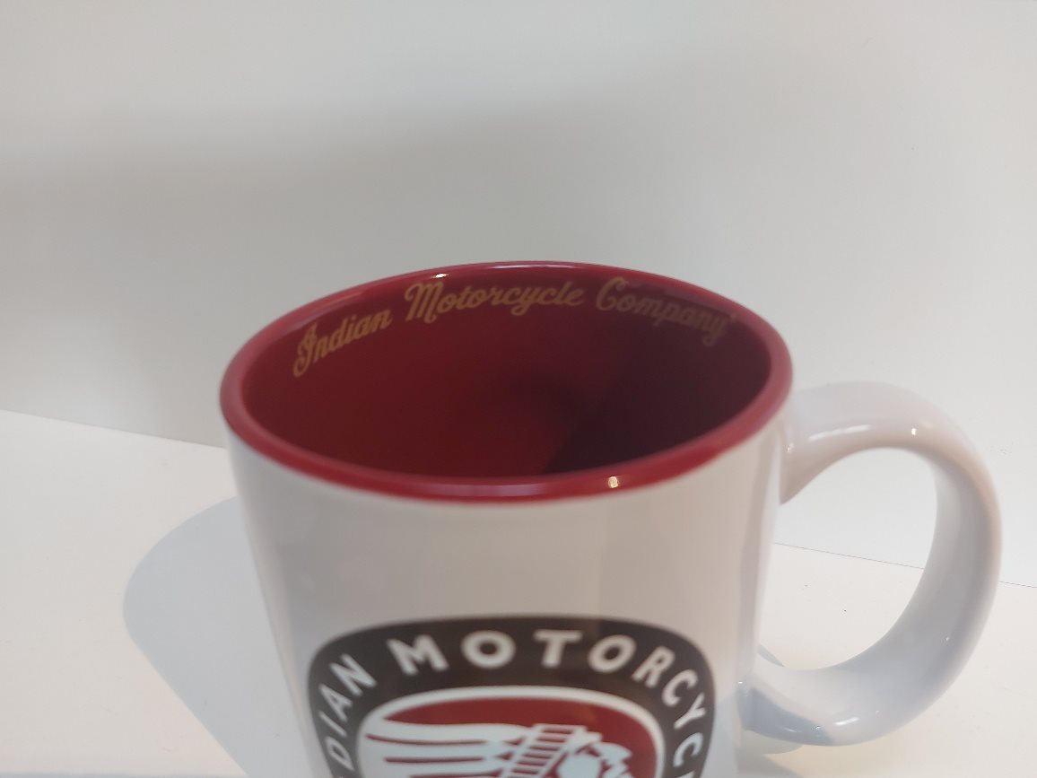 Artikel: Große Tasse mit Weißer Oberfläche und Roter Innenseite.