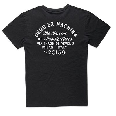 Address T-Shirt - Klassisches DEUS T-Shirt DEUS Address T-Shirt Regular Fit Mit klassischem DEUS Brust- und Rückenaufdruck 190gm Baumwolljersey Länge (Kragen hinten bis Saum unten): 73,0 cm bei Größe M Style: Classic