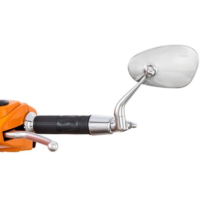 Lenkerendenspiegel BUMM: verchromt, Nierenform, Hebellänge: 100mm, schwere Ausführung, 115x70mm. Zur Montage sind kleine Modifikationen am Spiegel notwendig. Eine Montageanleitung ist online beim Artikel verfügbar, oder hier zu sehen.