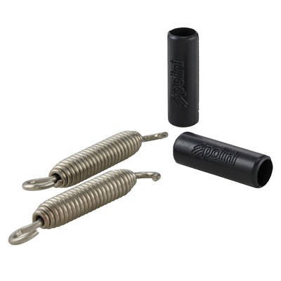 Viele Auspuffanlagen werden mit Federn am Auslass befestigt. Auch die Verbindung von Krümmer zu Körper ist meistens mit Federn ausgeführt. Diese Federn sind drehbar, einfach zu montieren und dämpfen sehr gut. Das lästige 'Surren' das manchmal mit Zylinderklingeln verwechselt wird, ist ausgeschlossen.