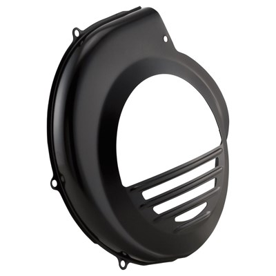 Lüfterradabdeckung für Vespa Schutzbauteil für Lüfterrad, Fahrerbein und zuverlässige Motorkühlung.Die Lüfterradabdeckung schirmt das rotierende Lüfterrad ab und verhindert, dass es selbst beschädigt wird oder andere Bauteile und Körperteile etwa das Bein des Fahrers in Mitleidenschaft zieht. Gleichzeitig ist sie für den deutschen TÜV ein wesentlicher Bestandteil eines betriebssicheren Rollers.Über die Abdeckung wird die vom Motor bzw. Zylinder entstehende Abwärme von der vorbeiströmenden Kühlluft geführt und abtransportiert. Fehlt die Lüfterradabdeckung, kann der Motor thermisch überlastet werden im Extremfall drohen Kolbenklemmer oder -fresser. Passende Ausführungen sind für alle gängigen Small-, Wide- und Largeframe-Modelle erhältlich.Fazit: Ein Muss für den TÜV und optisch ansprechend. Gehört an jeden Roller!Anmerkung: Auch für Wideframe- und ältere Largeframe-Modelle gibt es eine große Auswahl an Lüfterradabdeckungen. Je nach Ausführung sind sie schwarz, silber oder aus poliertem Edelstahl.Während die ersten Wideframe-Modelle (V115 und V3033) eine Seitenhaube mit Ausschnitt und eine von außen sichtbare Lüfterradabdeckung mit Lüftungsschlitzen besitzen, haben die VM/VN-Modelle eine geschlossene Seitenhaube mit Lüftungsschlitzen. Die darunterliegende Lüfterradabdeckung verfügt über einen runden Ausschnitt in der Mitte.Die Abdeckungen für Vespa 125 VN2T/ACMA/150 VB1T/VL13T/T13/VGL1T/GS sind in typischer Y-Cut-Optik gefertigt. Die Largeframe-Modelle der 60er-Jahre hingegen haben meist einen großen runden Mittelausschnitt mit der typischen Einzelstrebe unten.Auch für jüngere Largeframe-Modelle (PX/T5/COSA) gibt es zahlreiche Lüfterradabdeckungen, z. B. in Chrom, Schwarz, transparent, poliertem Edelstahl oder in Carbon-Look.SIP-TIPP: Farblich passende Schwingen- und Schaltrastenabdeckung machen den Look perfekt.