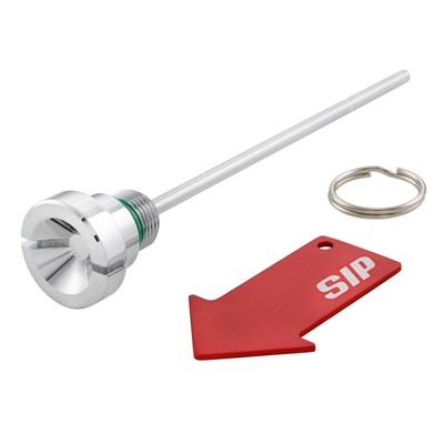 Die Öleinfüllschraube / Messstab SIP PORDOI für das Motoröl wird aus hochwertigem Aluminium CNC gefräst. Durch das schlichte Design sehen die Öleinfüllschrauben an jedem Fahrzeug schön aus und fügen sich gut in das Gesamtbild der Vespa ein. Am Messstab ist die Skala entsprechend der originalen Einfüllschrauben ausgerichtet, der passende Dichtring ist bereits angebracht. Oft werden die serienmäßigen Einfüllschrauben bei parkenden Fahrzeugen entwendet. Um Unbefugten die Arbeit zu erschweren, haben wir an ein kleines Sicherheitsplus gedacht und liefern ein spezielles Montage-Tool mit den Einfüllschrauben welches praktischer Weise auch als Schlüsselanhänger genutzt werden kann. Aufgrund der verschiedenen PIAGGIO Motoren haben wir unterschiedliche Einfüllschrauben für alle gängigen 125-300ccm Modelle gefertigt. SIP-TIPP: Mit weiteren CNC gefrästen Anbauteilen der SIP PORDOI Serie kombinieren.