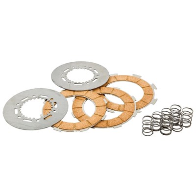Kupplungen sind ein, wenn nicht der wichtigste Bestandteil eines Motors und sorgen für den Kraftschluss zwischen Kurbelwelle und Getriebe. Um mehr Leistung übertragen zu können, ist eine höhere Reibung in der Kupplung nötig. Stärkere Federn führen zu mehr Anpressdruck, mehr Beläge zu einer größeren Reibfläche. Wir können Euch ein umfangreiches Lieferprogramm an Kupplungsbelägen, Kupplungsfedern und kompletten Kupplungen anbieten. Wir haben fast alle namhaften Hersteller im Programm und führen für nahezu jeden Vespa Motor eine große Auswahl. Alle Kupplungsbeläge können mit den zum Motortyp passenden, verstärkten Federn kombiniert werden. Die Standard Kupplungsbeläge gibt es zusammen mit Trennscheiben und Federn oder auch nur als Kork Kupplungsbeläge-Set. Bei den älteren Vespas sind die Beläge innen verzahnt. Ab der Vespa 125 VNA2T 081469 ->/150 VBA/GS VS5 sind die Trennscheiben verzahnt. Daneben unterscheiden sich die Beläge neben ihrem Durchmesser - auch noch in ihrer Dicke, sowie in Stärke und Anzahl ihrer Federn. FA sind günstige, PIAGGIO, NEWFREN und FERODO sind sehr gute Beläge. SURLEX liefert premium Beläge. Für getunte Motoren empfehlen wir mindestens verstärkte Federn, besser Sport/Race Kupplungsbeläge. Die Kupplungsbeläge sollten vor der Montage eine Nacht in Öl gelegt werden. Fazit: Ideal für originale Motoren. Ein Austausch ist bei jedem größeren Kundendienst empfehlenswert. SIP-TIPP: Neuer Keil, neue Kronenmutter und Käfig sind Pflicht. Verstärkte Federn und verstärkte Kupplungsbeläge bei getunten Motoren empfehlenswert. Getriebeöl SAE30 fürs nächtliche Kupplungsbelagbad nicht vergessen. Einzelne Beläge eignen sich gut für Kombinationen unterschiedlicher Dicken. Bei Kupplungsbelagwechsel auch die Anlaufscheibe Kupplung erneuern. SIP community user klose (über Art.nr. 93051000): Gut und Günstig SIP community user luca (über Art.nr. 93050000): Good as the original