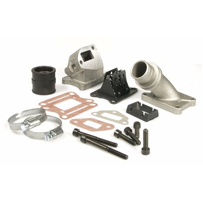 Nicht nur, wenn man auf der Suche nach einem ordentlichen Plus an Leistung ist, kann eine Umrüstung auf Membransteuerung sinnvoll sein. Vor allem wenn die Dichtfläche des Drehschiebereinlasses beschädigt ist, wird der Einbau einer Membran unausweichlich, um den Motor weiter fahren zu können. Der Ansaugstutzen muss hierfür ausgetauscht werden. Wir haben deshalb eine große Auswahl an Membranansaugstutzen passend für DELL'ORTO SHB und PHB Vergaser im Programm. POLINI bietet diese vom SHB 16.16 PHBL 24 (je nach Modell mit 2- oder 3-Lochbefestigung) mit Steckverbindung an. Passend für den PHBL 24, sowie für den eigenen 24er CP Vesgaser bietet POLINI Membran-ansaugstutzen mit flexibler Gummiverbindung. Auch von MALOSSI kommen hochwertige Membran-Ansaugstutzen mit Gummiverbindung, passend für den PHBL 24/25. Diese haben einen etwas größeren effektiven Querschnitt und eigenen sich dank Gummiverbindung auch als Basis für größere Vergaser. Die MALOSSI Kits enthalten neben dem Membranblock auch alle zur Montage benötigten Kleinteile. Auch für den FABRIZI Rennzylinder haben wir den passenden Membranansaugstutzen mit Gummiverbindung (Befestigung je nach Ausführung passend für 2- oder 3-Loch Motoren) im Programm. Er wird inklusive 6-Klappen Membran, Aluminiumverbindungsstück sowie der zur Montage benötigten Schrauben geliefert. Zwar sind für den Umbau auf Membransteuerung größere Modifikationen am Gehäuse empfehlenswert, jedoch wird man dafür mit den Vorteilen eines Steuerungssystems belohnt, das den Motor unabhängig von den Einlasssteuerzeiten der Kurbelwelle mit Gemisch versorgt. Der Motor kann dadurch quasi selbst bestimmen, wann er Gemisch benötigt, und wann nicht. Vor allem die Ansaugstutzen für den PHBL 24/25 versprechen dabei mit passendem Vergaser und entsprechender Peripherie einen deutlichen Leistungszuwachs. Fazit: Rettet den Motor bei beschädigtem Drehschiebereinlass und gibt ihm 'nebenbei' die Sporen. SIP-TIPP: Eine Lippenwelle (z.B.: Art.-Nr. 46110000) macht die Umrüstung auf Membransteuerung perfekt. Der Frässtift (Art.-Nr. 61626000) hilft beim Feinanpassen. SIP community user 'thibautfr' (über Art.-Nr. 21501150): Parfait!!!