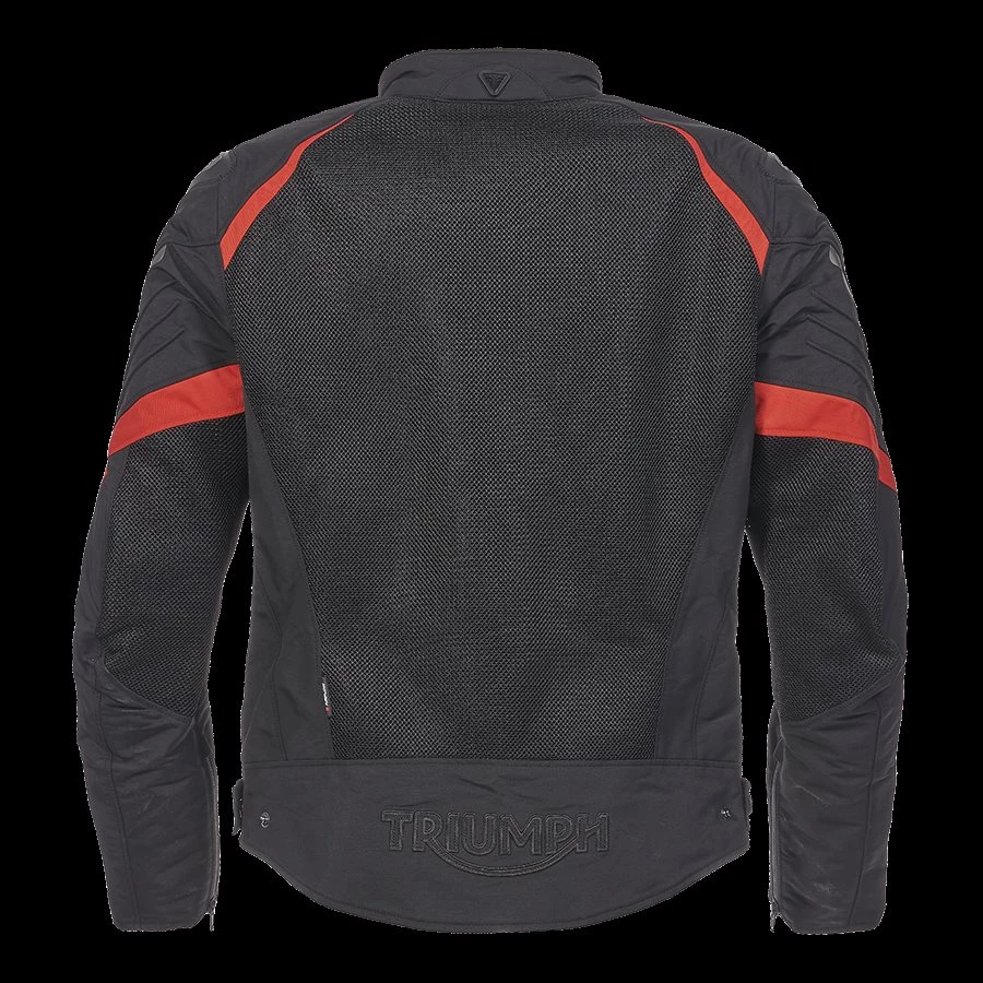Die neue schwarz-weiß-rote Triple Mesh-Jacke aus TriTech- Material und funktionalem Mesh-Gewebe mit Slip-Netzfutter sorgt für eine maximale Belüftung. Herausnehmbare D3O Schulter- und Ellenbogenprotektoren, ein verstellbarer Saum und verstellbare Bündchen sowie farbige und dunkel reflektierende Einsätze unterstreichen die hochwertige Anmutung und runden die sportliche Roadster-Optik ab.