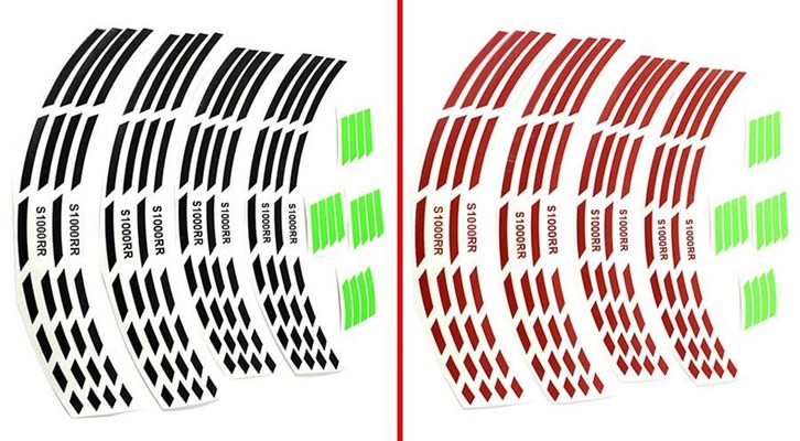 Felgenrand-Aufkleber mit Motorradtypenbezeichnung S1000RR. - vorgekrümmte 7 mm breite Segmente - für 17 Zoll Felge vorne und 17 Zoll Felge hinten - hochwertige Fahrzeugfolie - verschiedene Farben lieferbar (Sonderfarben auf Anfrage) Lieferumfang: 16 Segmente (4 Segmente pro Felgenseite) + Anleitung Nicht passend für Speichenfelgen mit außenliegenden Speichen!