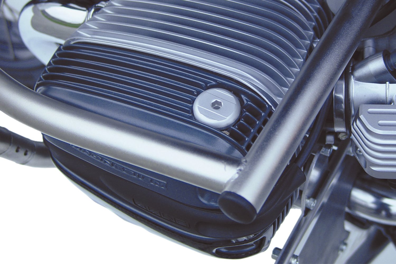 Ölstopfen mit zwei Längsnuten, die sich harmonisch an den Kühlrippen ausrichten lassen. Damit integriert sich der Ölstopfen harmonisch ins Motor-Design. Dieser Ölstopfen verfügt über ein ungewöhnliches Innensechskantmaß und lässt sich dadurch nicht so schnell entwenden wie das Original. Am Ölstopfen-Schlüssel ist ein O-Ring in einer Nut eingelassen, damit er beim Einstecken in den Stutzen sanft geklemmt wird und der Stutzen leicht herausziehbar ist. NC-gedrehtes, eloxiertes, hochfestes Aluminium. Inklusive Innensechskantschlüssel (liegt als Schlüsselanhänger bei) aus Messing und neuem O-Ring.Beschreibung zu Wunderlich Ölstopfen- silber anzeigen