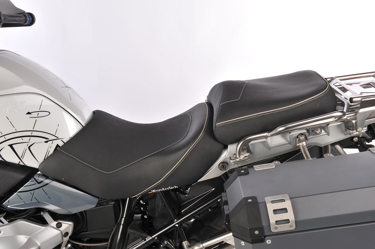 Erleben Sie die neue Generation einer Motorradsitzbank passend zur BMW R 1200 GS und BMW R 1200 GS Adventure: Durchdacht konstruiert mit vielen innovativen Lösungen. Die Original BMW Motorradsitzbank verfügt über eine ungünstige, das Steißbein belastende Form. Die Neigung der BMW Sitzbankoberfläche führt bei vielen zu einer falschen Beckenhaltung. Dem setzen wir einen aufwändig verarbeiteten Schaumstoffkern mit einer völlig neuen Kontur und einem einmaligen Materialaufbau entgegen. Bei unseren ThermoPro Fahrer- und Beifahrersitzbänken liegt die Temperatur der Sitzfläche im Hochsommer in praller Sonne um bis zu 25°C niedriger im Vergleich mit herkömmlichem Bezugsmaterial. Passend dazu haben wir eine Beifahrersitzbank im Programm. ERGO Motorradsitzbank die Fakten: Die passende Ergo Motorradsitzbank für den Souzius finden Sie unter Art-Nr.: 25630-110. Achtung: Wenn an ihrem Fahrzeug die originale, tiefe Sitzbank montiert war benötigen Sie noch den Anbausatz 40050-000. Beschreibung zu Wunderlich Fahrer Sitzbank AKTIVKOMFORT - schwarz - Standard anzeigen