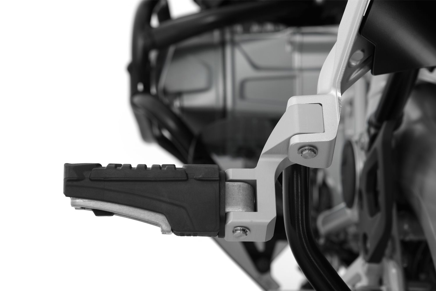 Diese unter ergonomischen Gesichtspunkten entwickelte Rastenverlegung sorgt für eine entspannte und bequeme Sitzposition, die auch bei längeren Etappen keinerlei Haltungsschäden“ hinterlässt. Um die optimale Fußposition zu erreichen, wurde diese Rastenverlegung aufwändig aus dem Vollen gefräst. Zum Lieferumfang gehören alle notwendigen Befestigungsteile. Am Originalhalter muss nichts geändert werden, keine Funktion wird beeinträchtigt und auch die BMW-Systemkoffer passen weiter ohne Einschränkung.