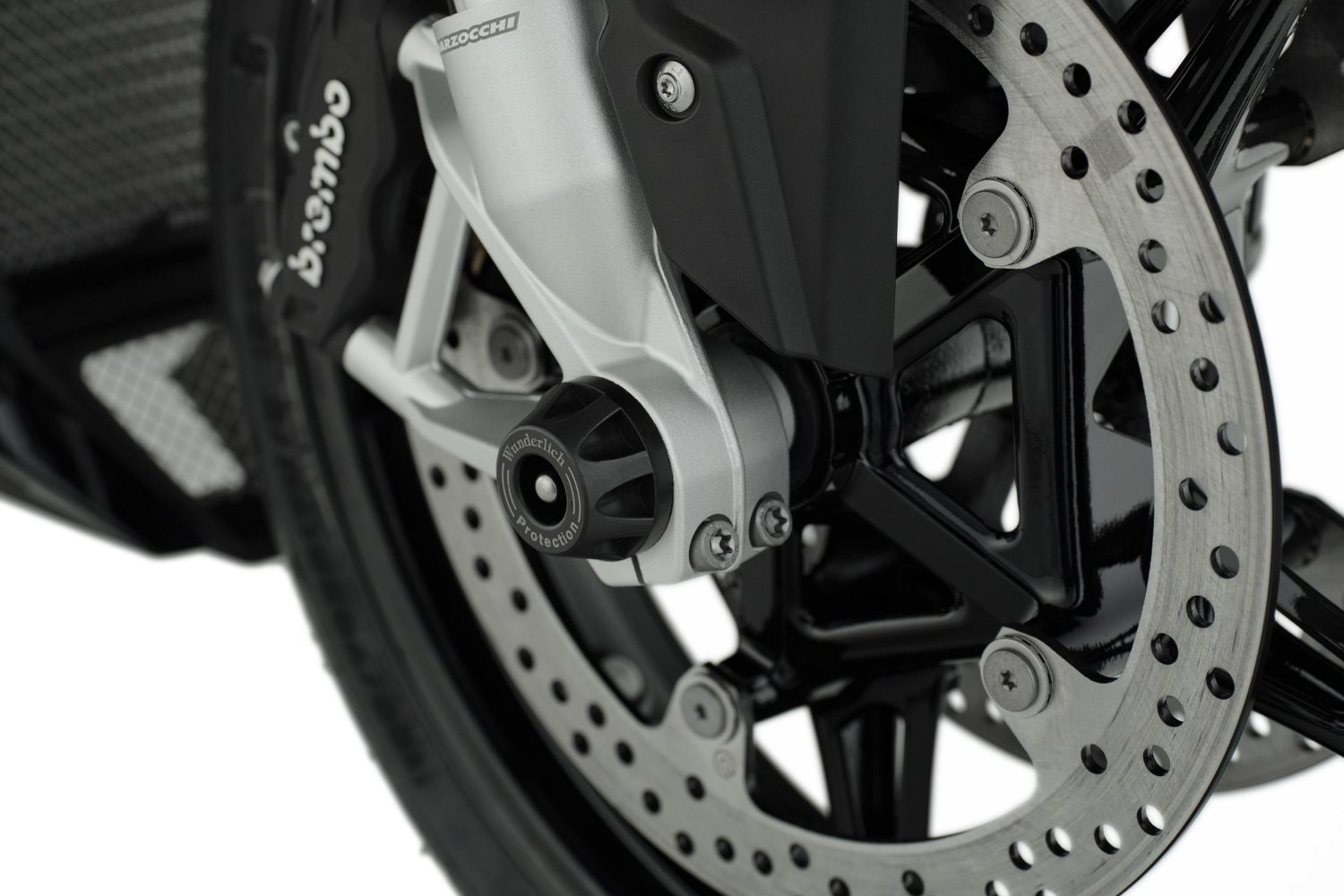 Die Achs-Schutzpads sorgen im Falle des Umfallens des Motorrads oder bei einem Sturz dafür, dass die Gabel, die Radachse und Bremsanlage effektiv vor Beschädigungen geschützt werden. Die Schutzpads distanzieren diese genannten Bauteile beim punktuellen oder schleifenden Kontakt mit dem Untergrund oder der Straße und reduzieren oder vermeiden so teure Schäden am Motorrad. Dabei haben wir neben der Werkstoffwahl zwei wesentliche, spezifische Eigenschaften konstruktiv integriert und im Rennsport erprobt, nämlich die Dämpfung und einen Reibwiderstand, der sich in der Gleitphase progressiv erhöht. Die Dämpfung: Als erste positive Eigenschaft ist die Dämpfung zu nennen, die bei schlagartigen Krafteinwirkungen einen Teil die Aufprallenergie ganz oder teilweise aufnehmen kann und absorbiert. Der Reibwiderstand: Die zweite positive Eigenschaft ist der Reibwiderstand, der aufgrund der Bauteilgeometrie von außen nach innen durch die Vergrößerung der wirksamen Gleitfläche zunimmt. Damit erreichen wir, dass unser Achs-Schutzpad bei leichten Berührungen nur einen geringen Reibwiderstand bietet, jedoch beispielsweise bei längerem, schleifenden Fahrbahnkontakt, die Schleifphase zeitlich und räumlich verkürzt. D.h. bei einem Sturz mit Achs-Schutzpad verkürzen sich die Zeit in der das Motorrad rutscht und der Rutschweg selbst. Für den optimalen Schutz Ihrer Maschine empfehlen wir die Kombination unserer Achs-Schutzpads mit unseren fahrzeugspezifischen Schutzbügelsystemen, für die wir zusätzliche Schutzpads anbieten. Funktion Technische Daten: Besonderheiten Produktkategorien:Beschreibung zu Wunderlich Achs-Schutzpads DOUBLESHOCK - schwarz - vorne anzeigen