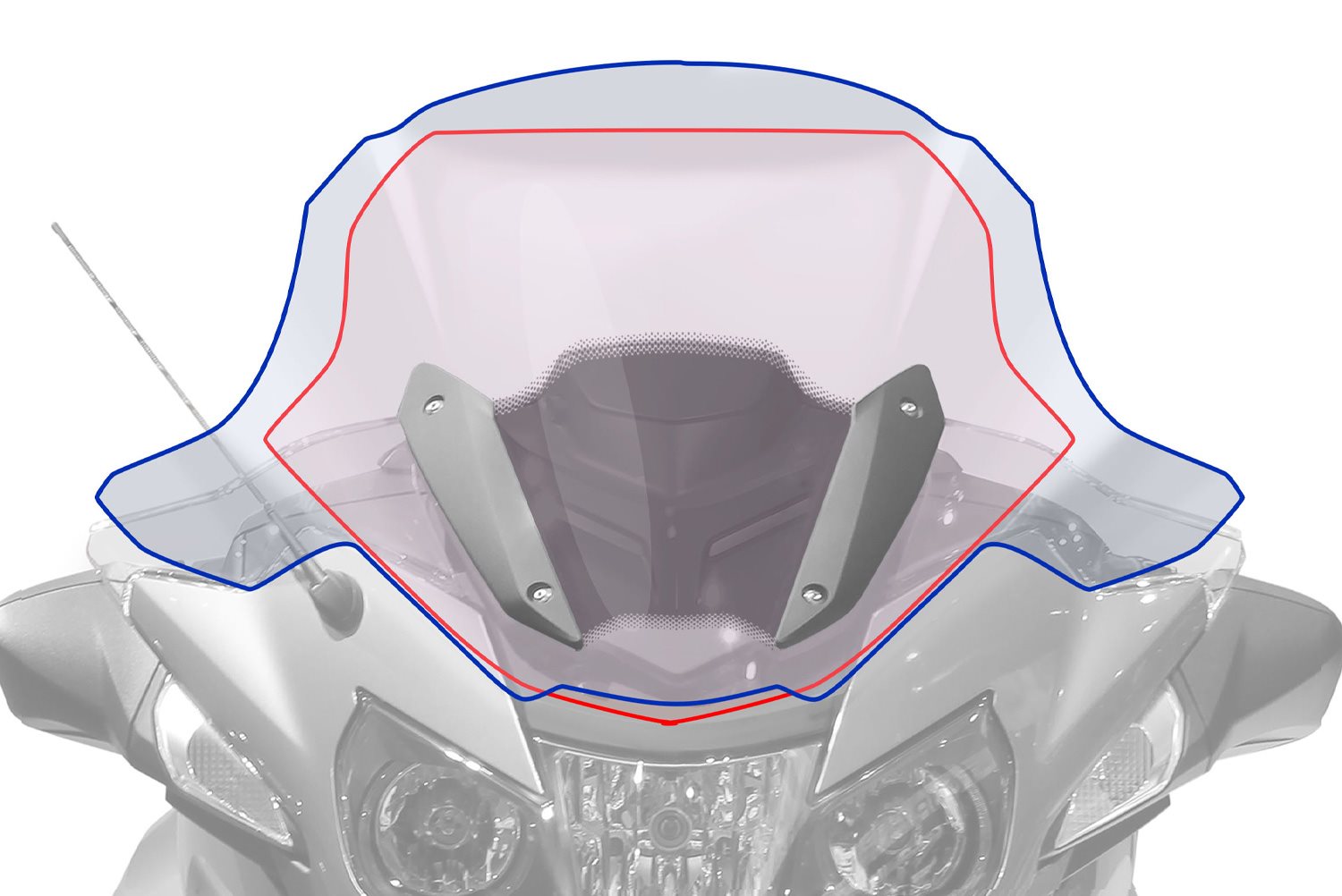 Eine Luxus-Tourenscheibe für den Tourer: In allen Dimensionen vergrößertes Windschild, das für maximale Entspannung sorgt und selbst lange Marathon-Touren zum Genuss werden lässt.Seitlich haben wir Flaps eingearbeitet, die Turbulenzen minimiert und den ganzen Oberkörper samt Schultern gleichmäßig entlastet. Durch diese Kontur erreichen wir optimalen, verwirbelungsfreien Schutz im Helmbereich. So finden auch große Fahrer sehr guten Schutz, der bis in hohe Geschwindigkeitsbereiche anhält.