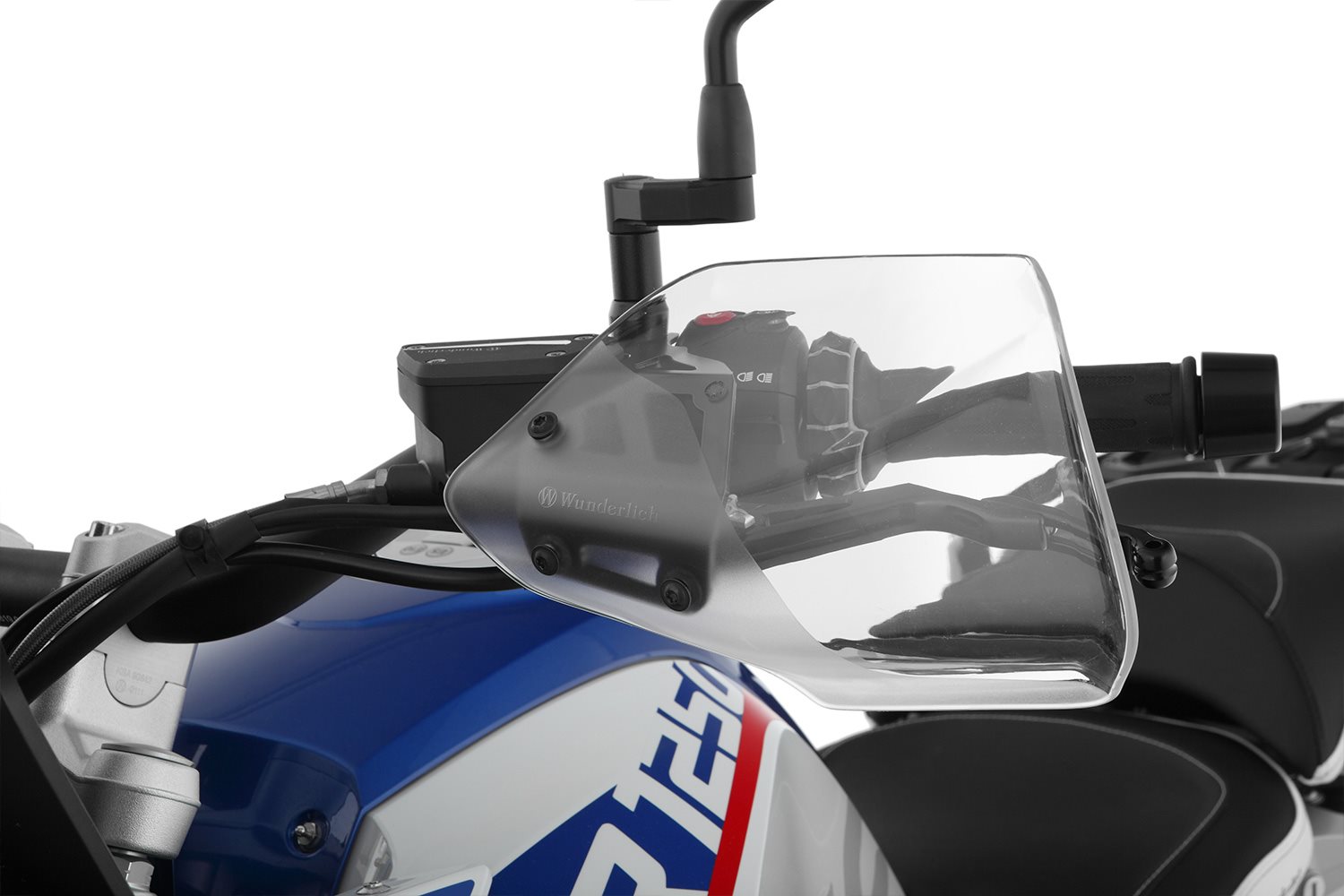 Lange war der Einsatz von Handprotektoren ausschließlich Offroad-Maschinen vorbehalten. Dies ist völlig unverständlich, bieten sie doch viele Vorteile. Kalte, klamme oder nasse Hände sind unangenehm, genau wie Steinschlag, Straßenschmutz jeder Art oder bei hohen Geschwindigkeiten aufprallende Insekten. Mit unseren Handprotektoren für die BMW sorgen wir für Abhilfe. Mehr Schutz geht nicht, aber so viel Schutz sollte schon sein. Wir haben unsere Handprotektoren zur Wasserableitung mit einem nach außen ragenden Kragen versehen, der Spritzwasser nach außen lenkt und seitlich abfließen lässt. Abgesehen von der Funktionalität sind unsere Handprotektoren dezent und ansprechend designt. Die Handprotektoren bestehen aus Acryl, sie sind thermisch beständig, kratz- und bruchfest und unempfindlich gegenüber Benzin. Sie lassen sich einfach und schnell montieren. Sie sind verwendbar mit und ohne Griffheizung sowie Lenkerenden-Gewichten und unserer Cruise Control. Anmerkung: Mit kalten, klammen und nassen Händen und Handschuhen lassen sich die Armaturen eines Motorrads nicht sicher bedienen. Bei durchnässten Handschuhen sorgt die Konvektion des Fahrtwinds für noch mehr Wärmeabfuhr. Es können sich leichter Verkrampfungen einstellen, bei denen nicht mehr an ein entspanntes Fahren zu denken ist. Doch nur wer entspannt fährt, weil er sich wohl fühlt, kann sicher fahren. Deshalb sorgen unsere Handprotektoren neben dem Schutz vor Wind, Wetter und mechanischen Einflüssen, für mehr passive Sicherheit! Funktion Wunderlich Produktkategorie Technische Daten Besonderheiten Hinweis für R 1200 RS LC und R 1250 RS: Hinweis für für R 1200 RT LC und R 1250 RT:Beschreibung zu Wunderlich Handprotektoren- transparent anzeigen
