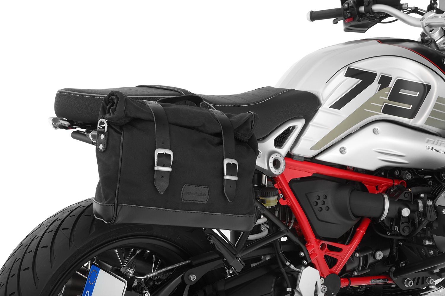 Mit viel Liebe zum Detail erschaffener Klassiker, der in Handarbeit exklusiv für Wunderlich gefertigt wird. Diese stylischen, olivschwarzen Seitentaschen für rechts oder links aus gewachster Baumwolle sind nicht nur eine praktische Gepäcklösung, sie verleihen der R nineT auch einen ansprechenden, lässigen Look. Die Echtleder-Applikationen betonen die Wertigkeit, das widerstandsfähige Innenfutter macht die Taschen zum robusten Gebrauchsgegenstand. Ein Reißverschluss sowie zwei breite Lederriemen verschließen die Tasche zuverlässig und stilecht. Der Inhalt von 9,5 Litern je Tasche kann durch optional erhältliche wasserdichte Innentaschen vor jeder Witterung geschützt werden. Befestigt werden die modernen Klassiker durch einfach zu bedienende und sichere LOXX-Schnellverschlüsse an dezenten Edelstahlträgern, die auch ohne die Taschen eine gute Figur machen. Im Kaufgegenstand sind eventuell abgebildete Zubehörteile nicht inbegriffen! Die Fakten: Maße ( L / B / H ) in cm: Volumen in Litern (ca.): Die Taschen lassen sich sowohl rechts als auch links verwenden Zur Montage der Tasche(n) werden folgende Halterungen benötig: 44115-220 Grundhalter - An diesem Grundhalter finden die Taschenhalterungen festen Sitz. Der Grundhalter wird nur einmal benötigt, ganz gleich ob die Taschen nur rechts, nur links oder auf beiden Seiten montiert werden sollen.Beschreibung zu Wunderlich Seitentasche MAMMUT R nineT - schwarz - Stück anzeigen