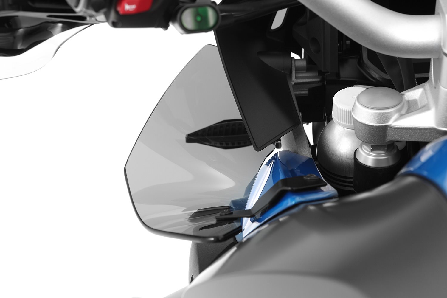 Deshalb haben wir diese Flaps für die R 1200 GS LC (2017 -) und R 1250 GS entworfen. Sie sind das Pendant für die an der Adventure bereits serienmäßig vorhandenen Windabweiser. Diese Flaps schützen den GS-Fahrer effektiv vor Fahrtwind und Witterungseinflüssen, die seitlich am Cockpit vorbei strömen und verhindern zuverlässig Verwirbelungen in diesem Bereich. Die an dieser Stelle an einer ungeschützten GS entstehenden Probleme können sich sogar noch auf die von uns entwickelten sehr guten Tourenscheiben negativ auswirken.