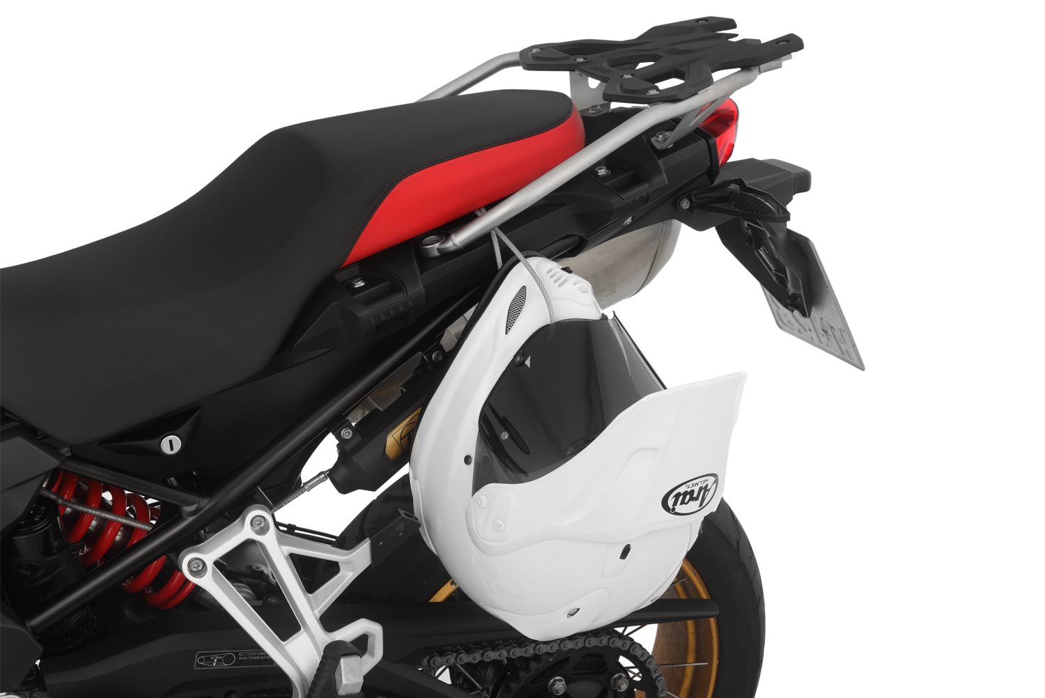 - Einfaches und diebstahlsicheres Befestigen von bis zu zwei Helmen