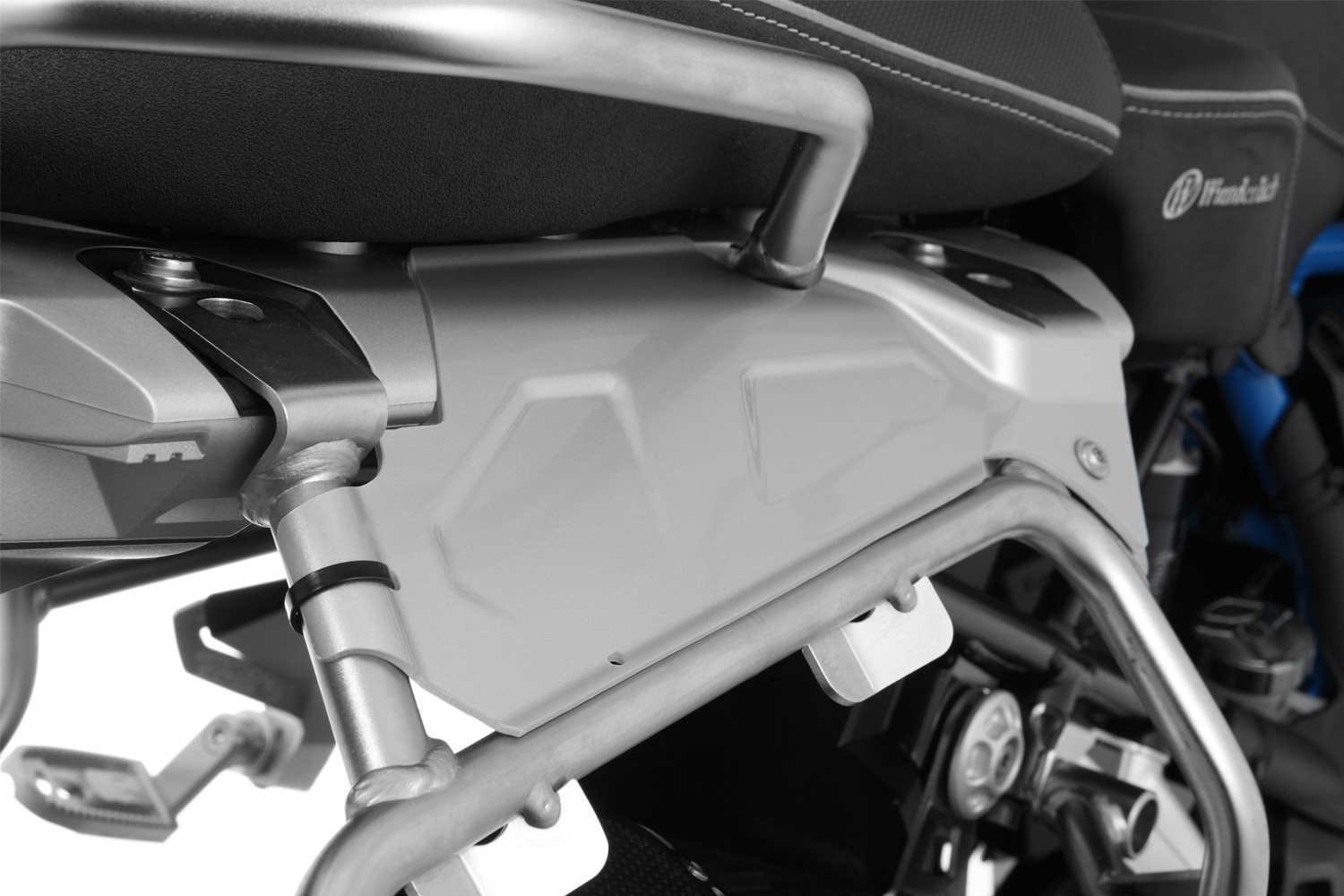 Die beiden Abdeckungen verschließen die Öffnungen zwischen den Kofferträgern und dem Heckrahmen und sorgen für ein stimmiges Erscheinungsbild. Aufgewirbelter Schmutz, Steinschlag und Spritzwasser werden aufgefangen bzw. abgeleitet. Dadurch wird die Verschmutzung oder die Gefahr der Beschädigung der Koffer und des Sitzes erheblich reduziert oder vermieden, genau wie die Verschmutzung oder das Durchnässen der Kleidung des Sozius. Eine Verschönerung in zweierlei Hinsichten ist die silberfarbene Variante des Spritzschutzes. Sie hält den Schmutz ab und wertet gleichzeitig das Motorrad optisch auf. FunktionBeschreibung zu Wunderlich Spritzschutz für Kofferträger - silber - Satz anzeigen