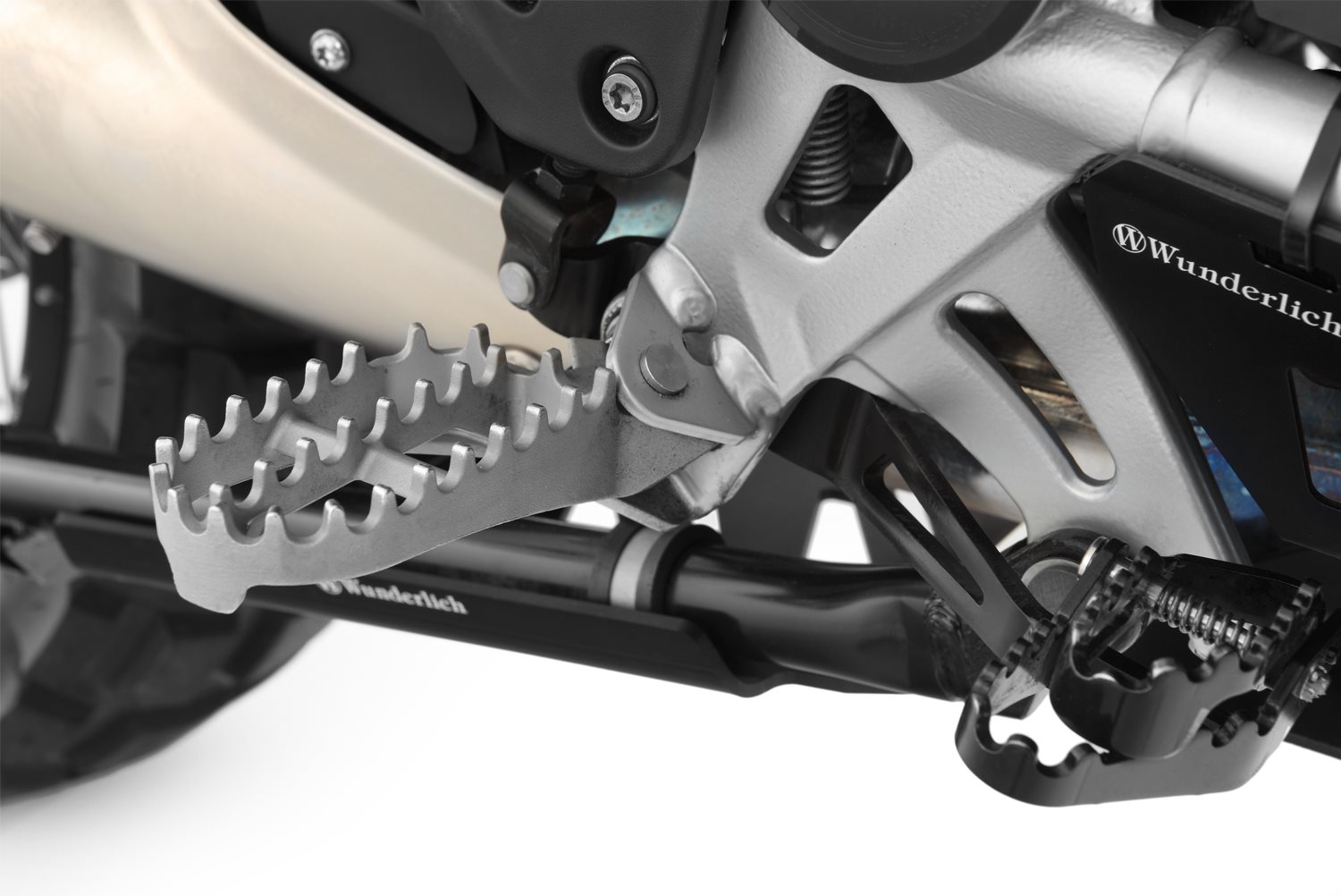 Die original Metall-Fußrasten der R 1200 GS LC Adventure und der R 1250 GS Adventure sind perfekt fürs Gelände ausgelegt: Sie sind robust und stabil und schmutztolerant. Selbst wenn sie mit Staub und Schlamm überzogen sind, bieten sie sicheren Halt. Sie bieten Grip, aber keinen Komfort. Soweit, so gut.